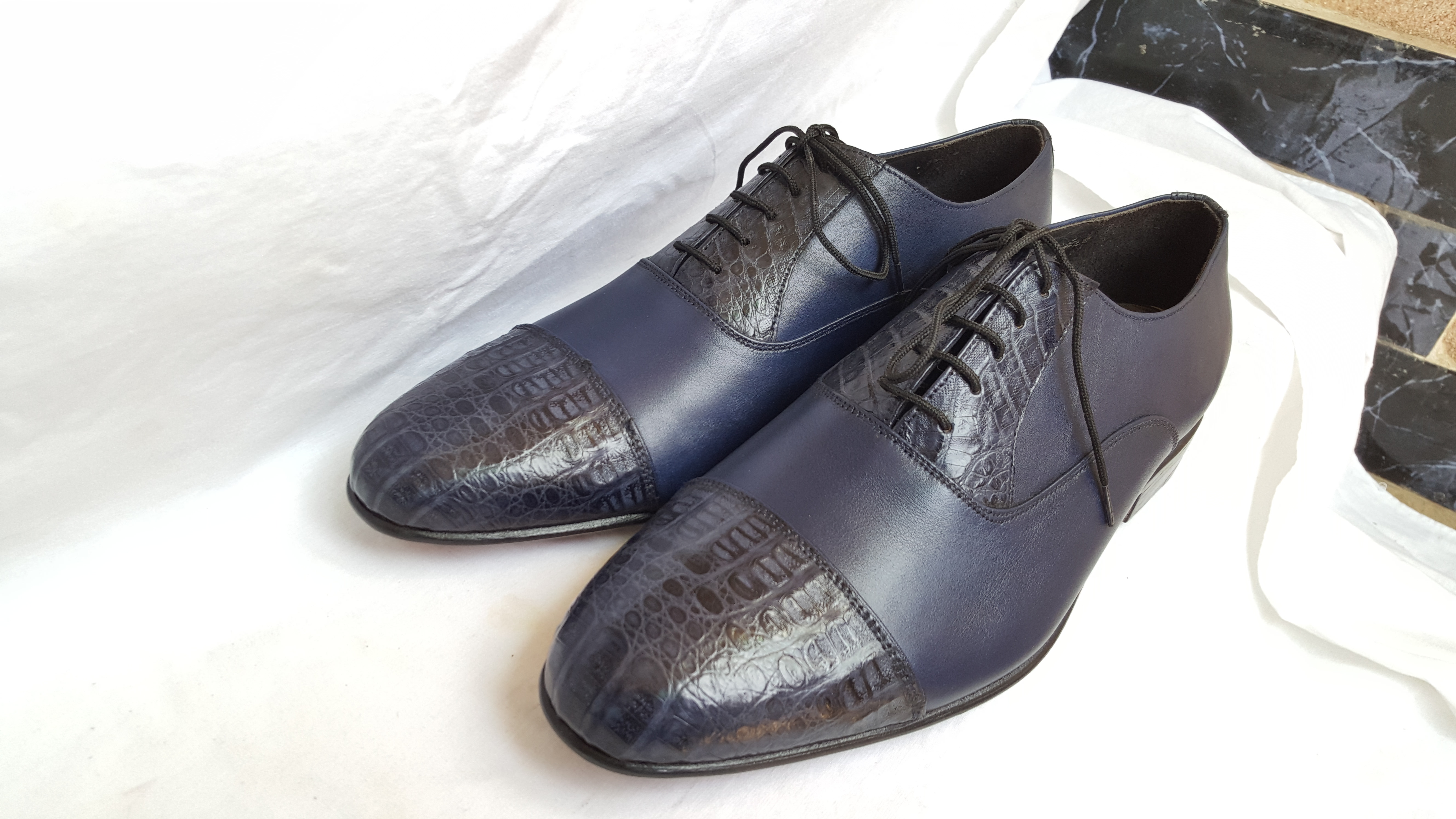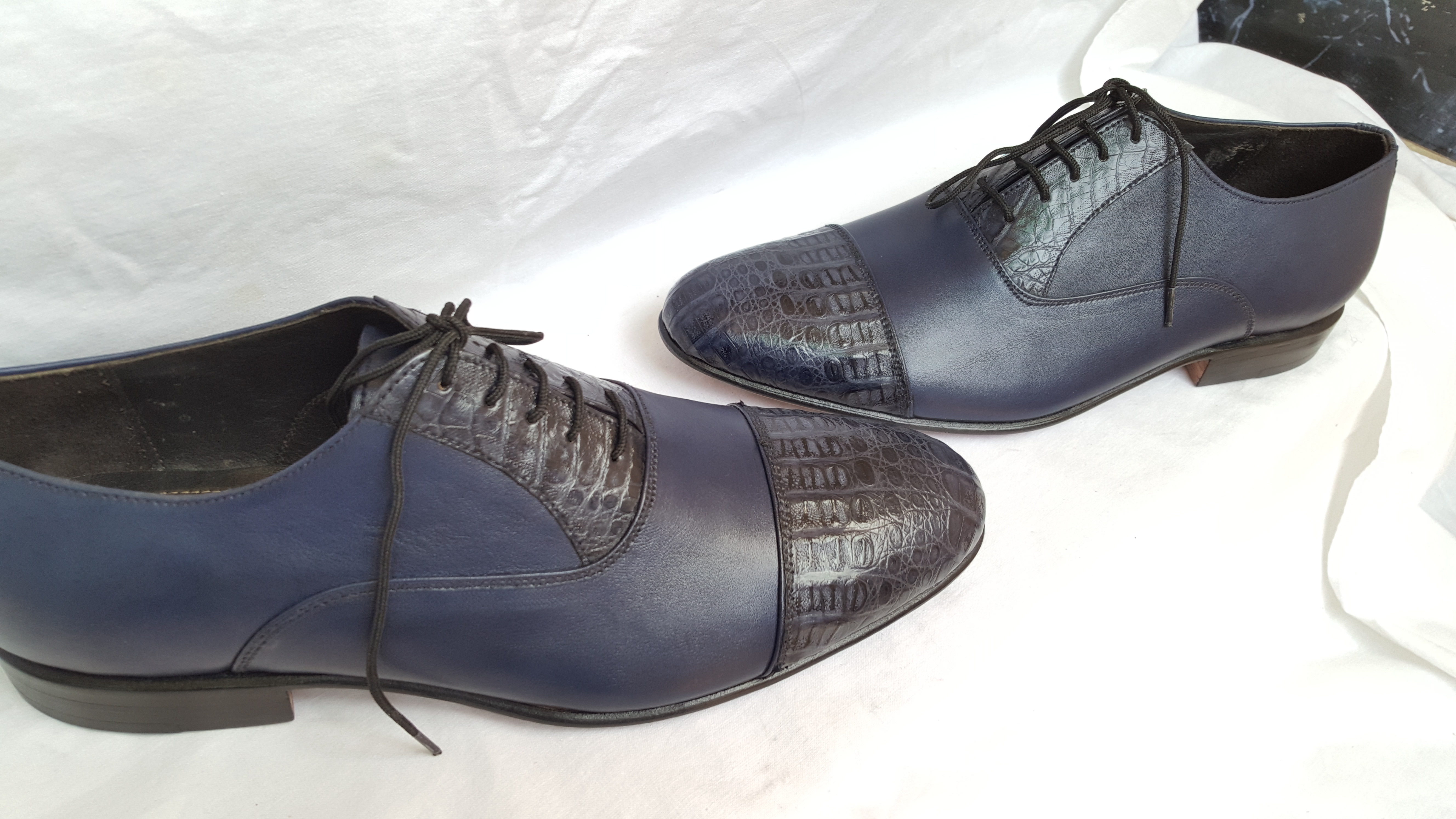 Oxford Blue Shoes Crocodile Genuine Leather Round Toe Lace Up Formal Dress