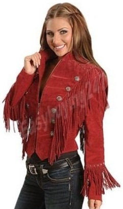 Red Military Style Racing Biker Suede Leather Jacket With Fringes For Women's