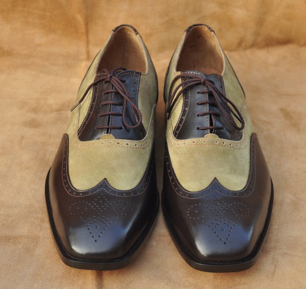 Two Tone Color Oxford Brown Brogue Suede Finished Genuine Leather Shoes for Men