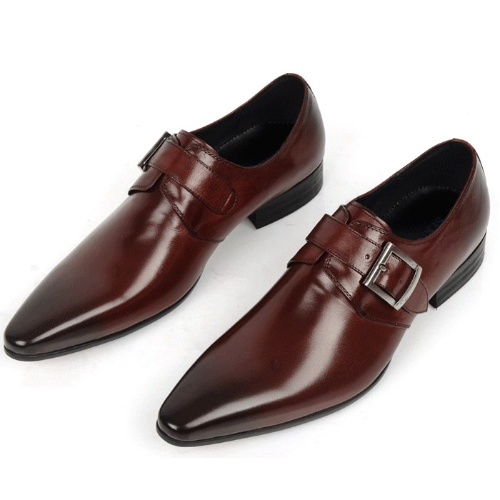 Two Tone Men Black & Brown Pointed Toe Buckle Strap Monk Genuine Leather Shoes