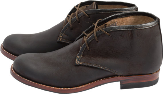 High Ankle Men Black CowBoy Plain Toe Laceup Real Leather Boots With Brown Sole