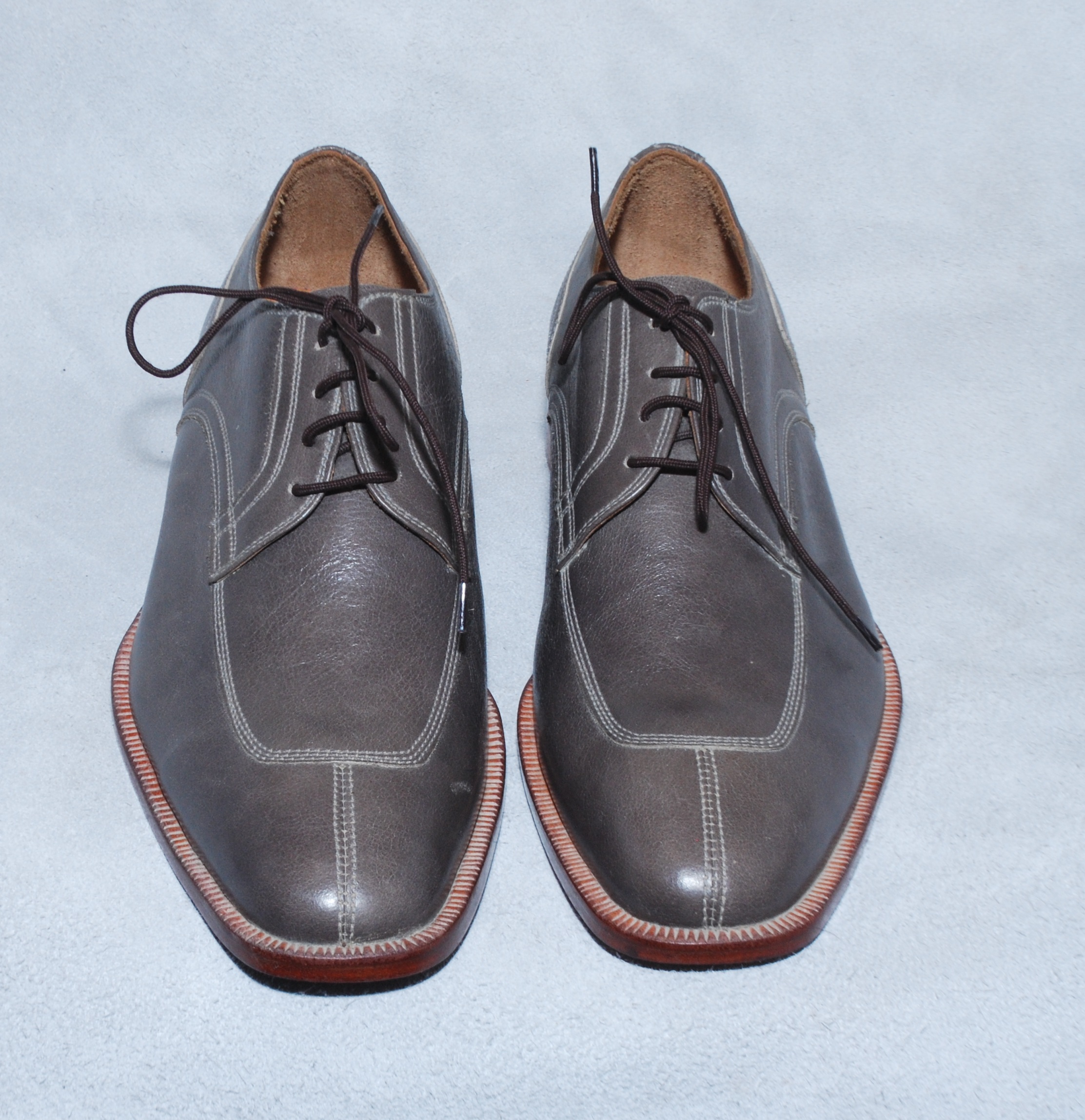 Coffee Brown Laceup Split Toe Plain Tip Oxford Genuine Leather Shoes For Men