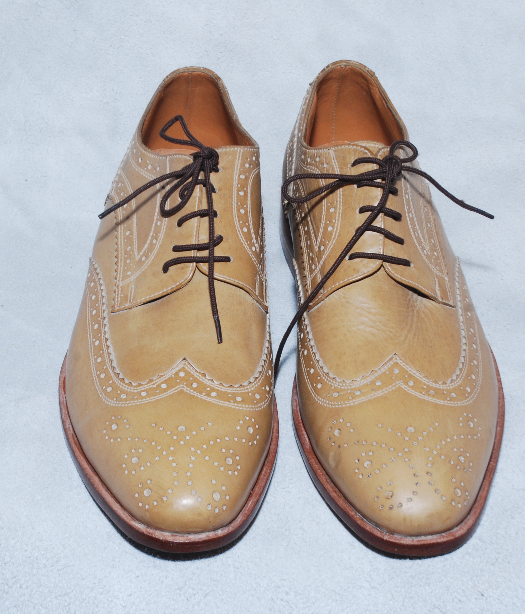 Men Beige Color Wing Tip Full Brogues Laceup Oxford Classical Real Leather Shoes