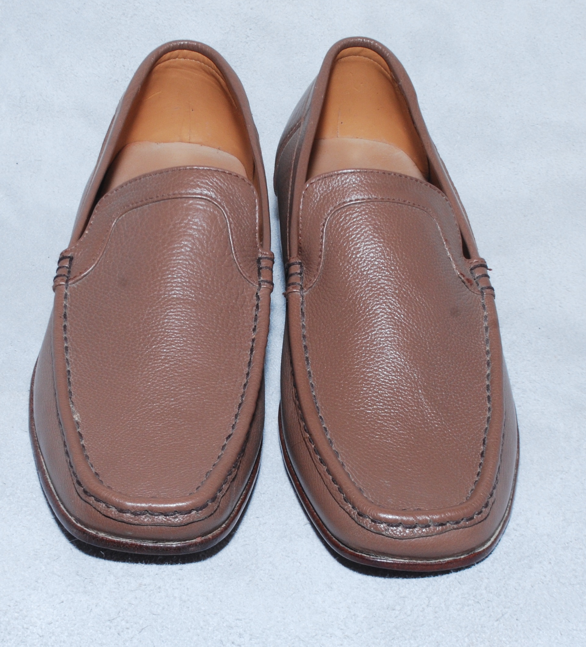 Hand Stitched Brown Rounded Toe Genuine Leather Loafers Slip On For Men