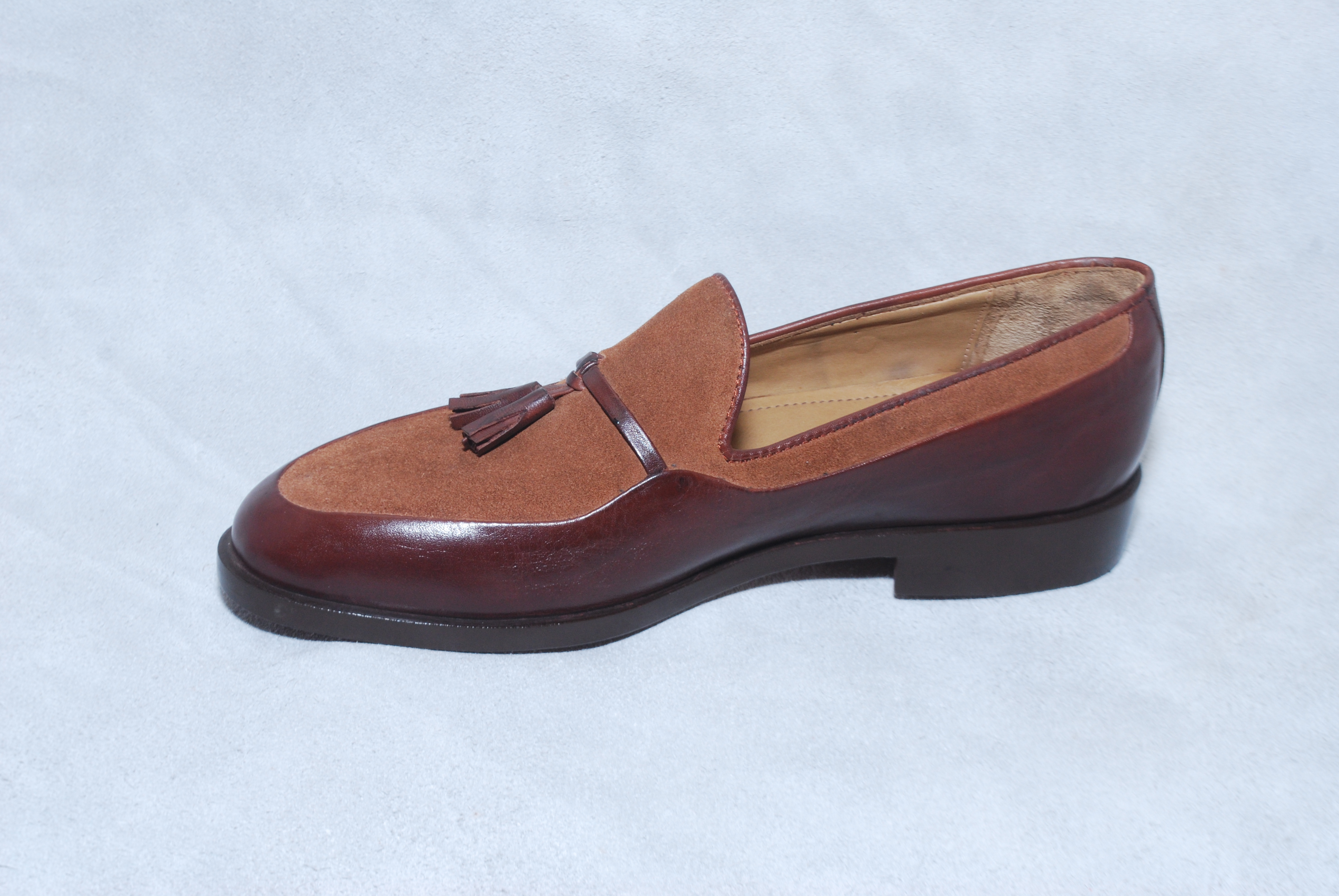 Classical Men Brown Suede Mocassins Black Sole Genuine Leather Tussels Loafers