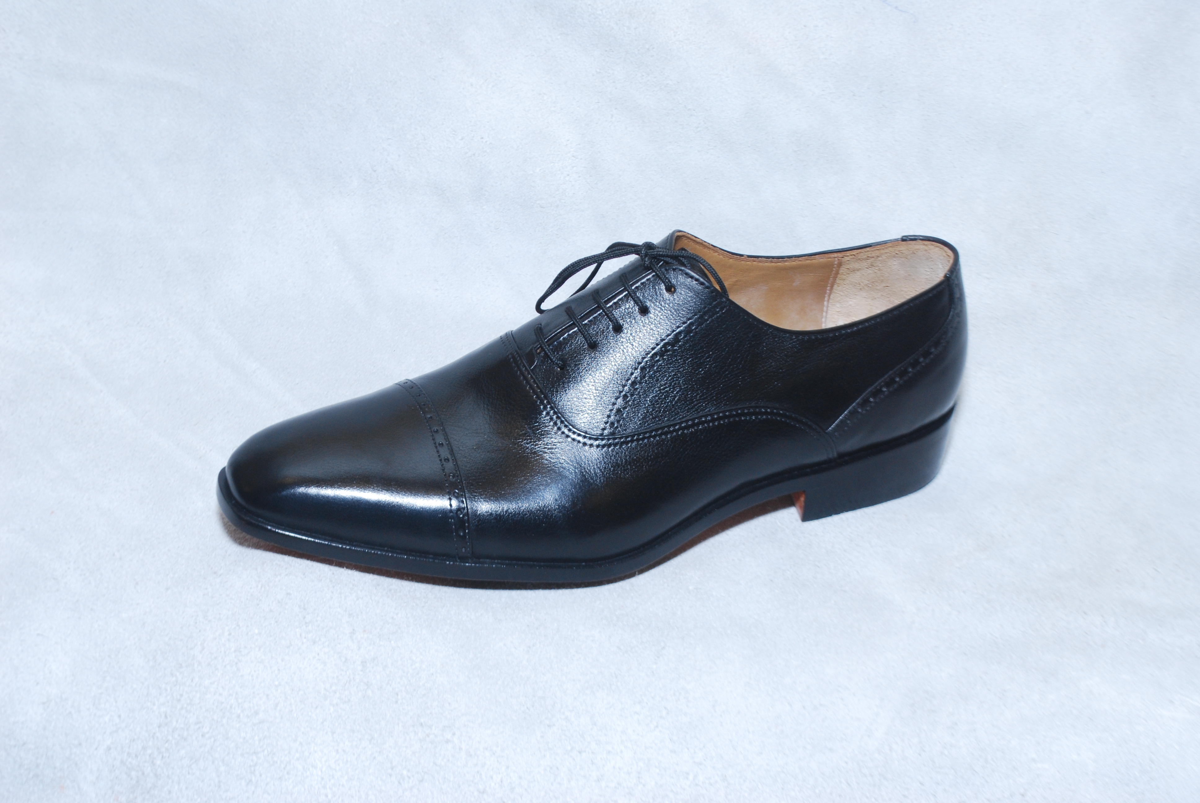 Handmade Men Black Cap Toe Plian Tip Laceup Oxford Genuine Leather Shoes