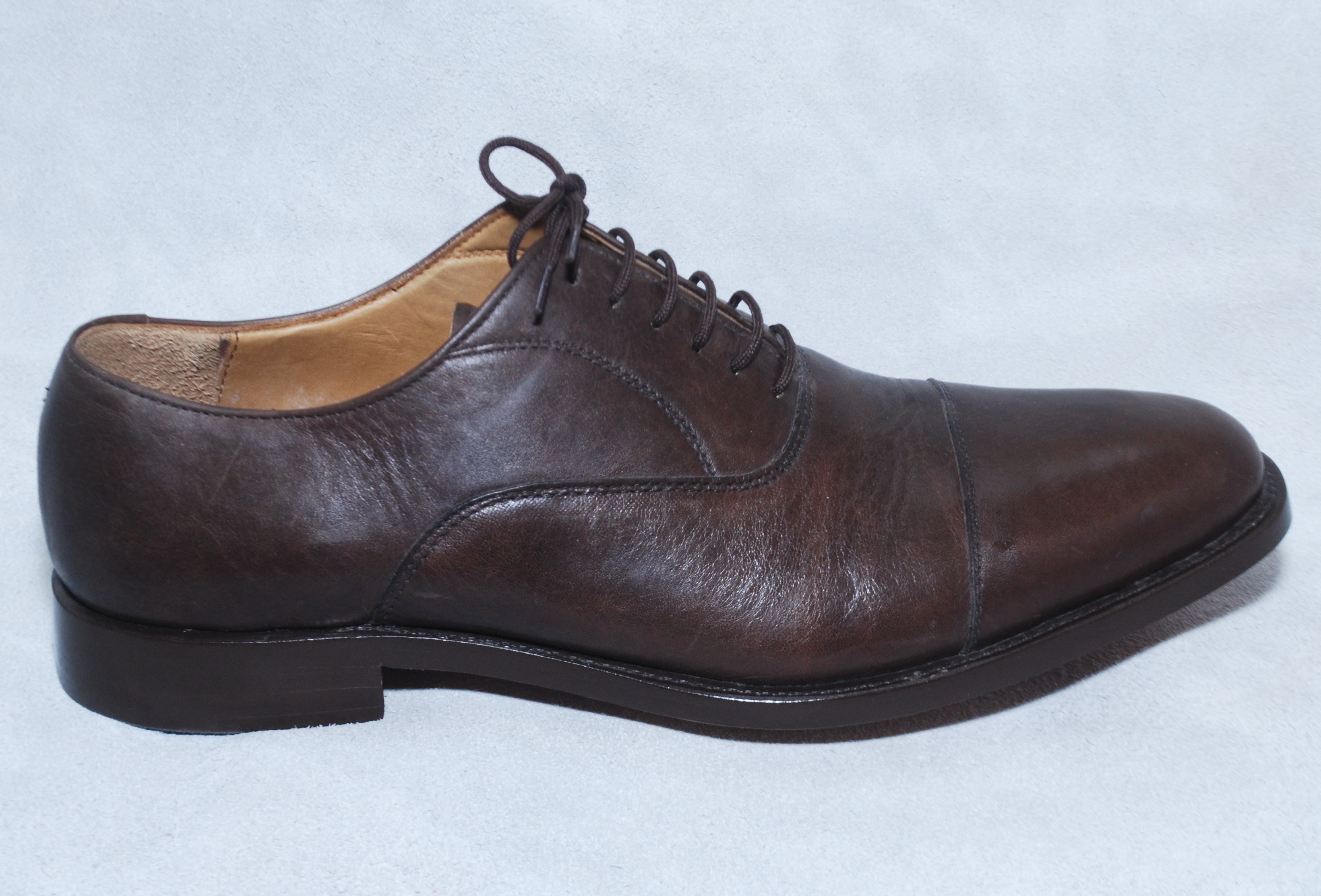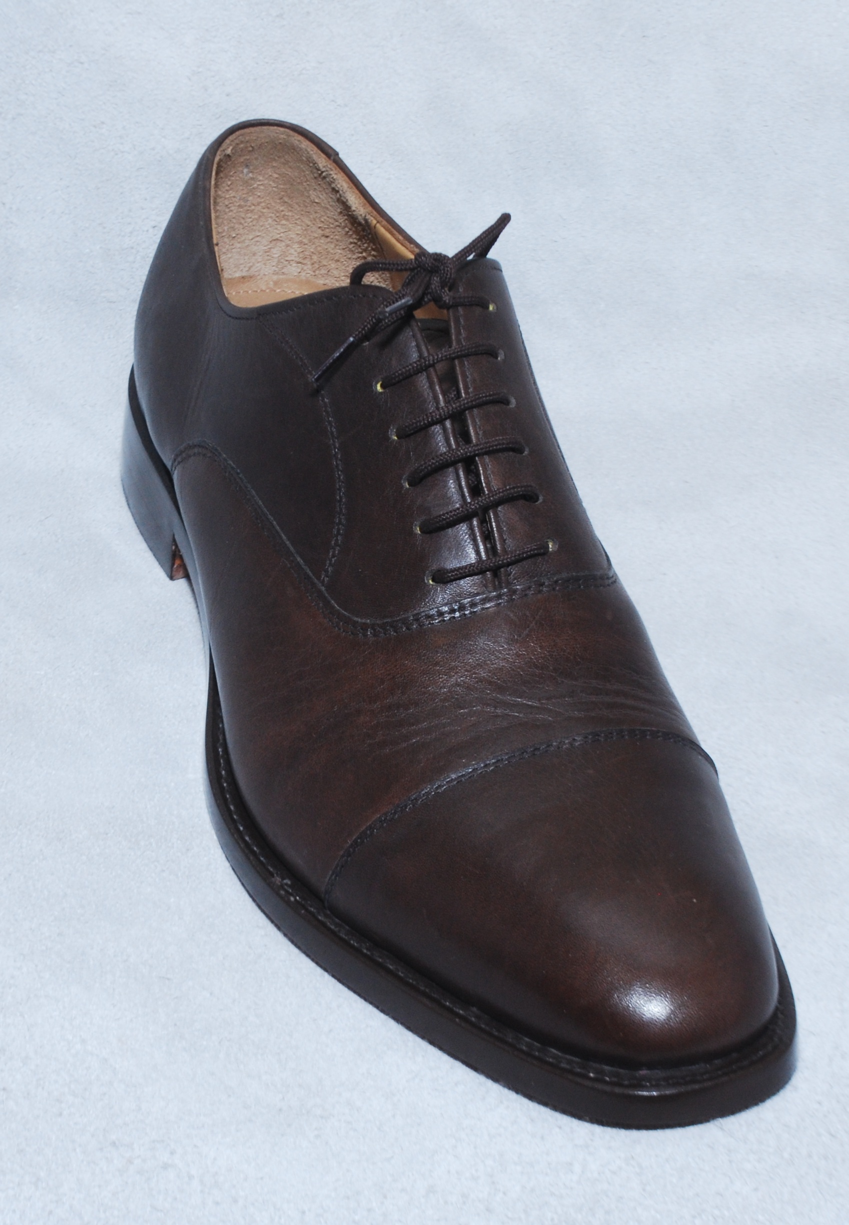 Brown Cap Toe Lace up plain Tip Oxford Classical Pure Leather Shoes For Men