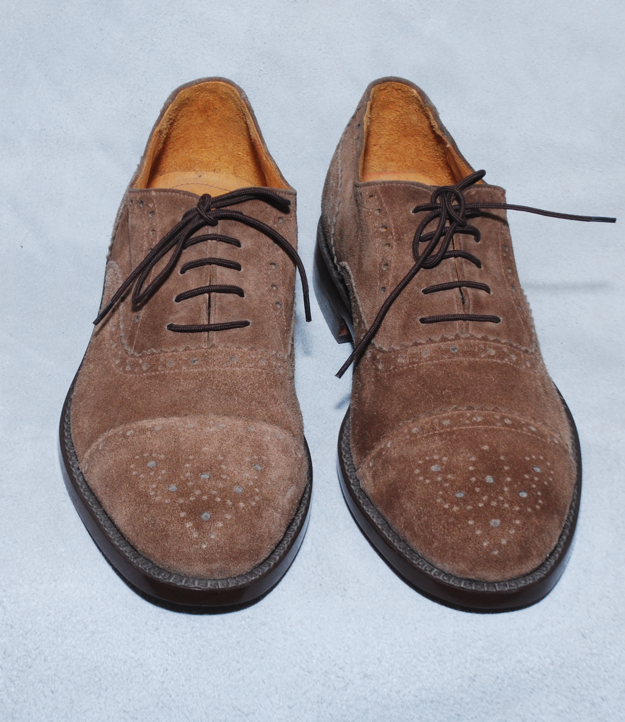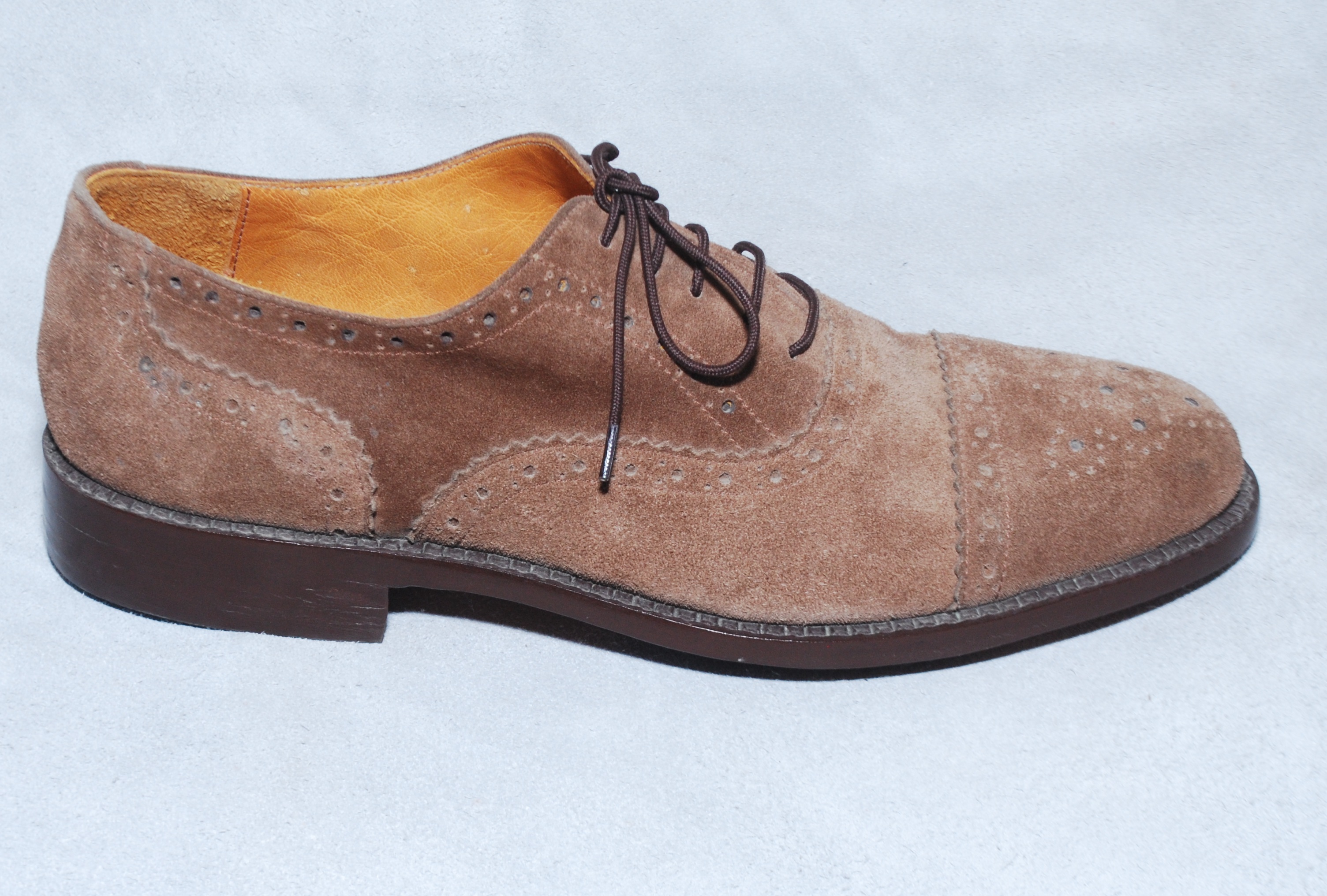 Hand Stitched Men Brown Brogue Cap Black Laceup Oxford Suede Pure Leather Shoes