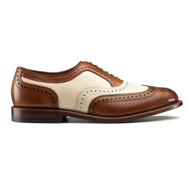 Men Burnished Brown & Off White Wing Tip Brogue Toe Laceup Oxford Leather Shoes