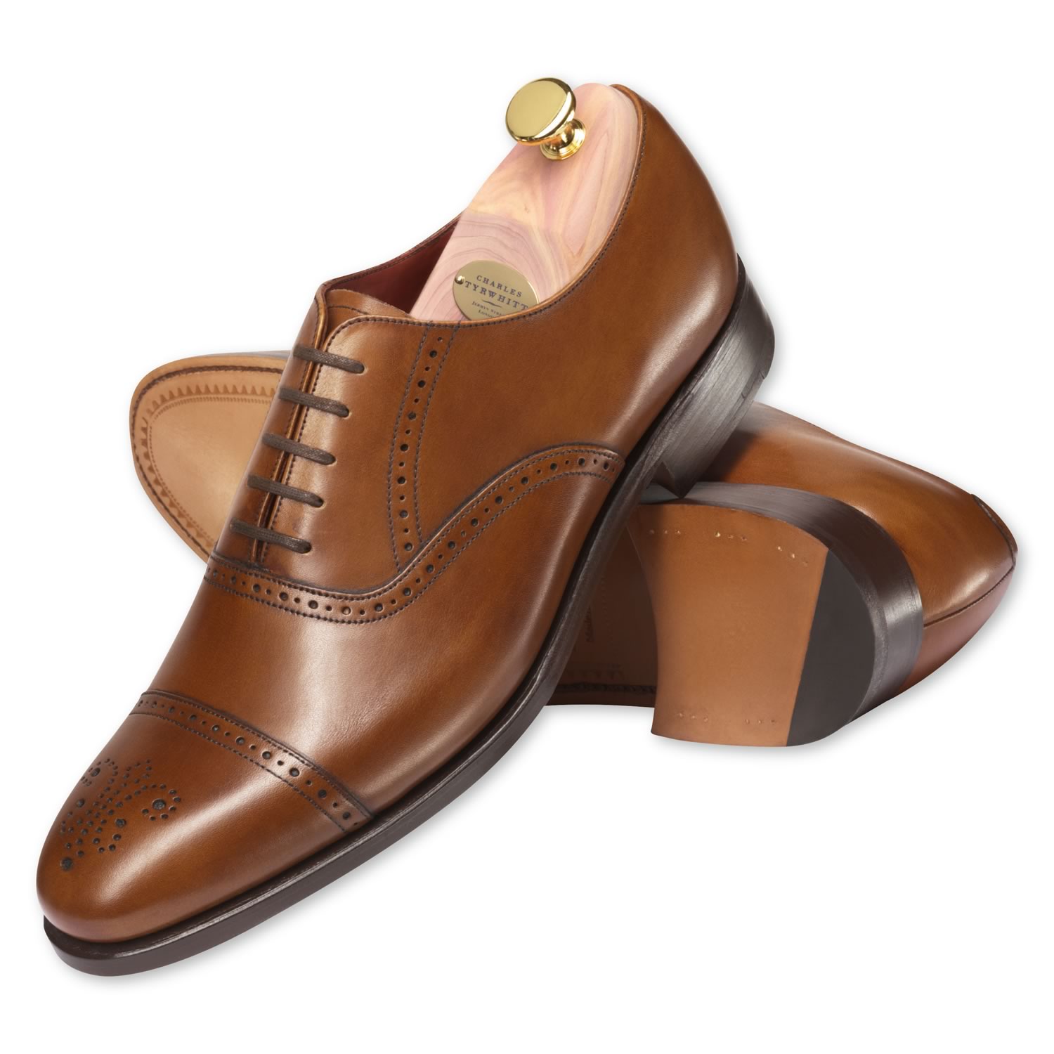 Hand Stitched Brown Men Brogue Cap Lace up Oxford Genuine Pure Leather Shoes