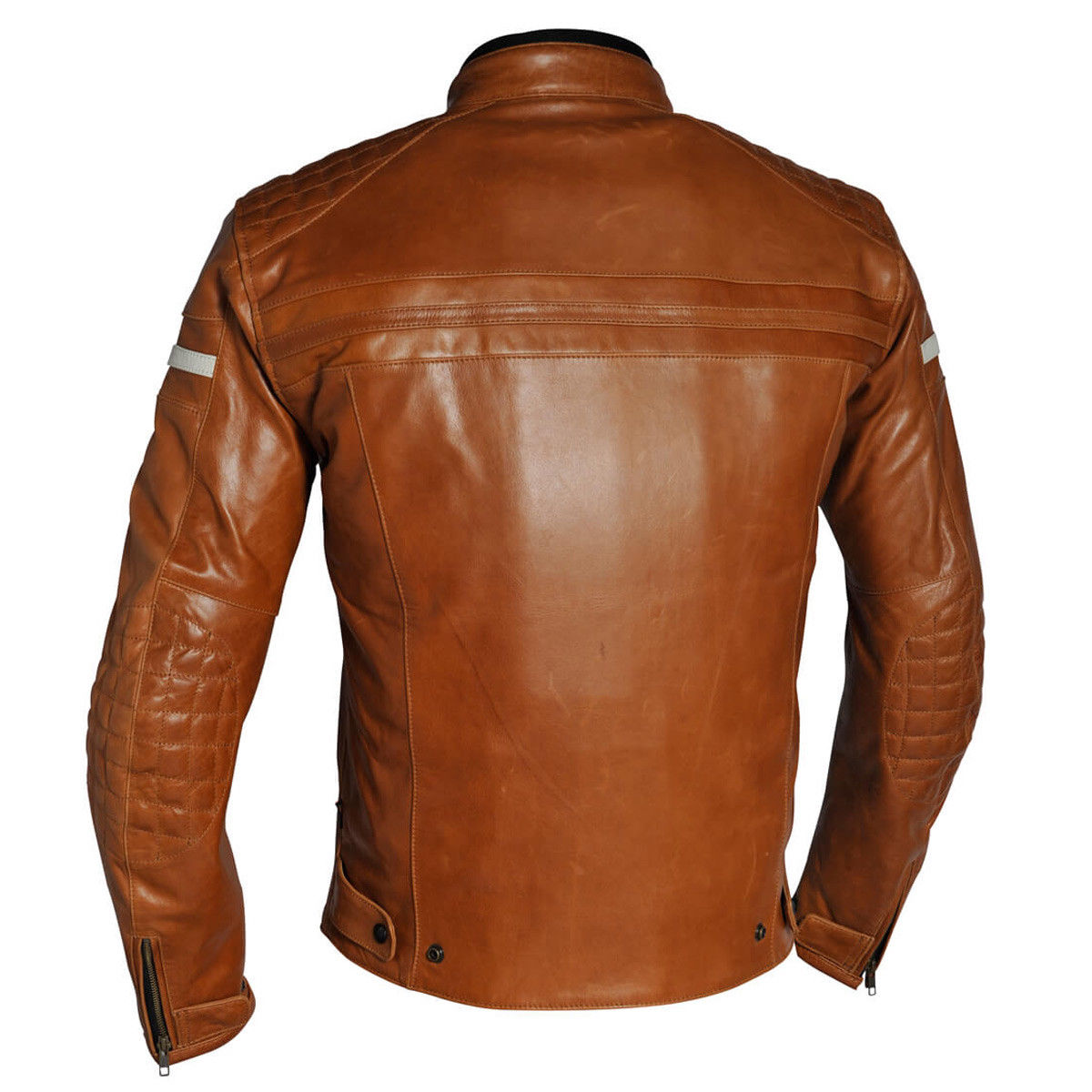 Men New Brown Color Motorcycle Racing Quilted Zipper Genuine Leather Jacket
