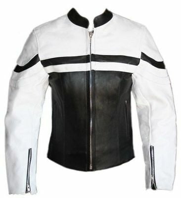 Made To Order Men's New Two Tone Black White Contrast Racing Motorcycle Leather Jacket