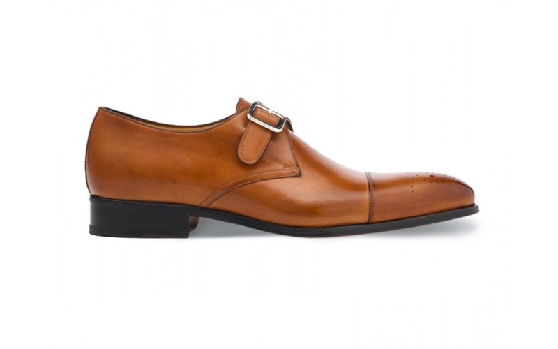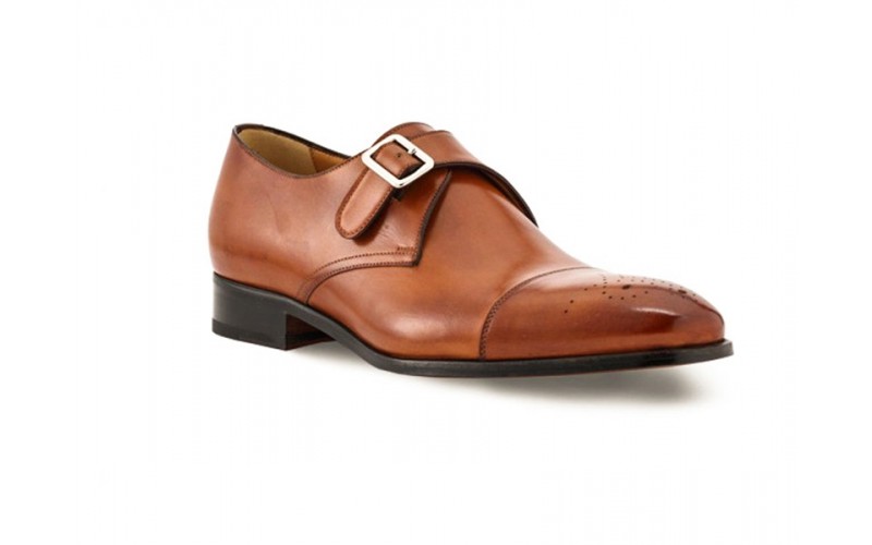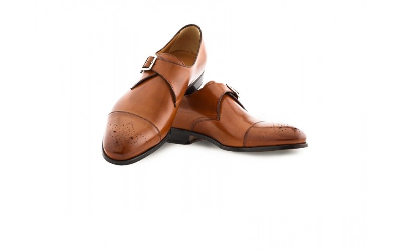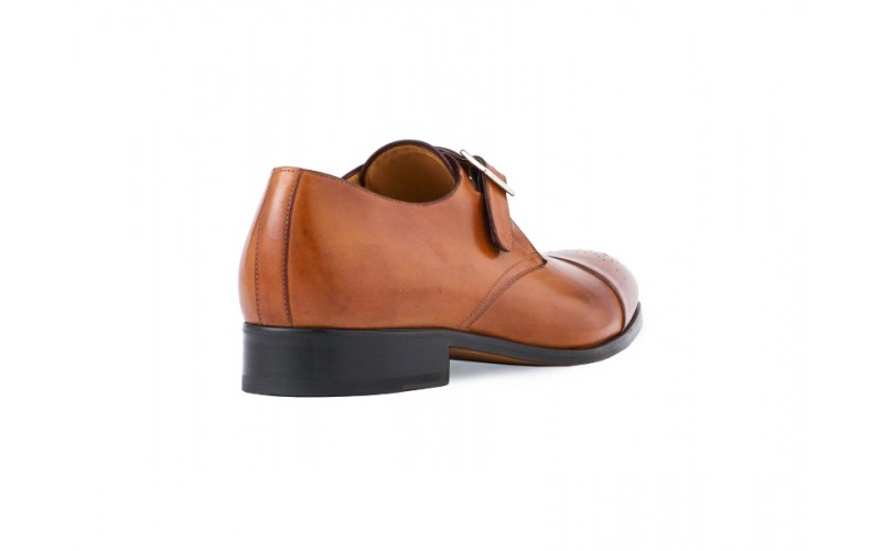 Brown Monk Single Buckle Strap Genuine Leather Brogue Cap Toe Formal Handmade Shoes