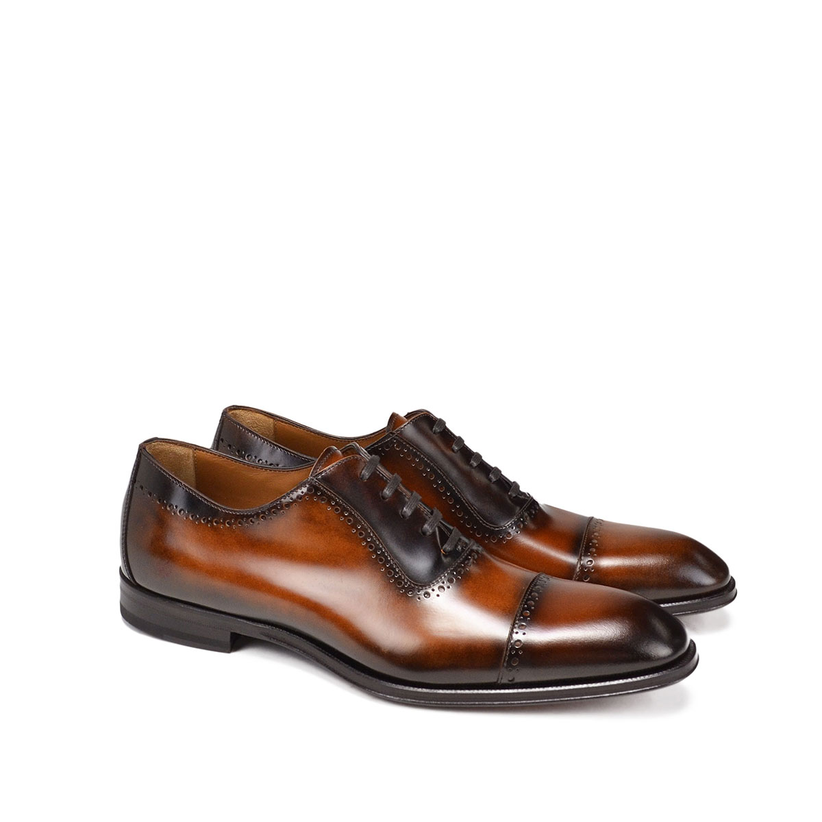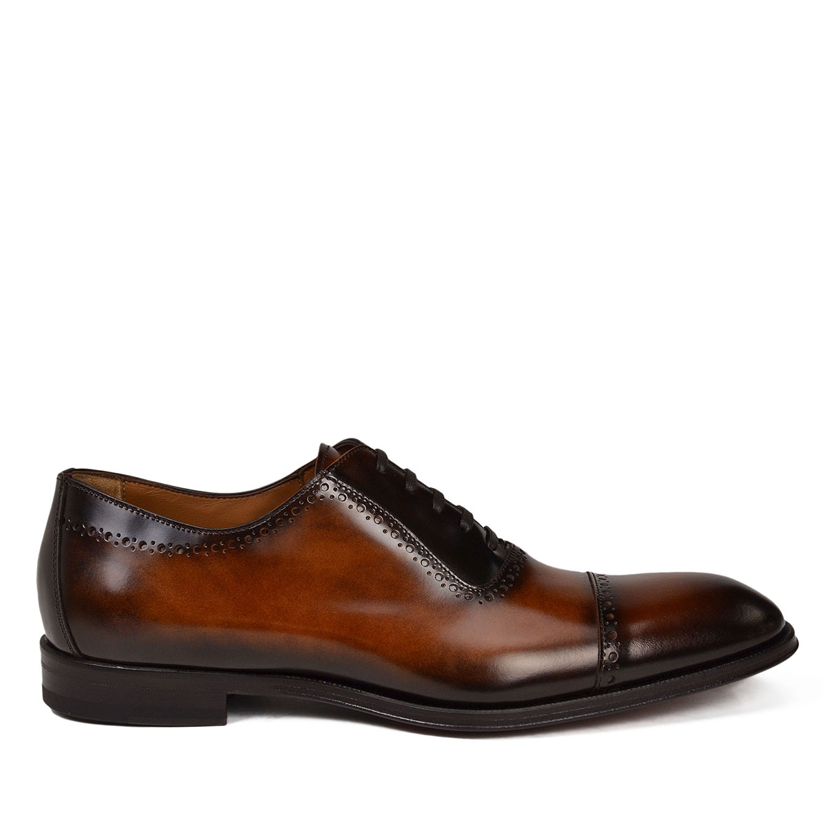 Brown Oxford Formal Dress Vintage Leather Derby Burnished Cap Toe Lace Up Footwear Shoes