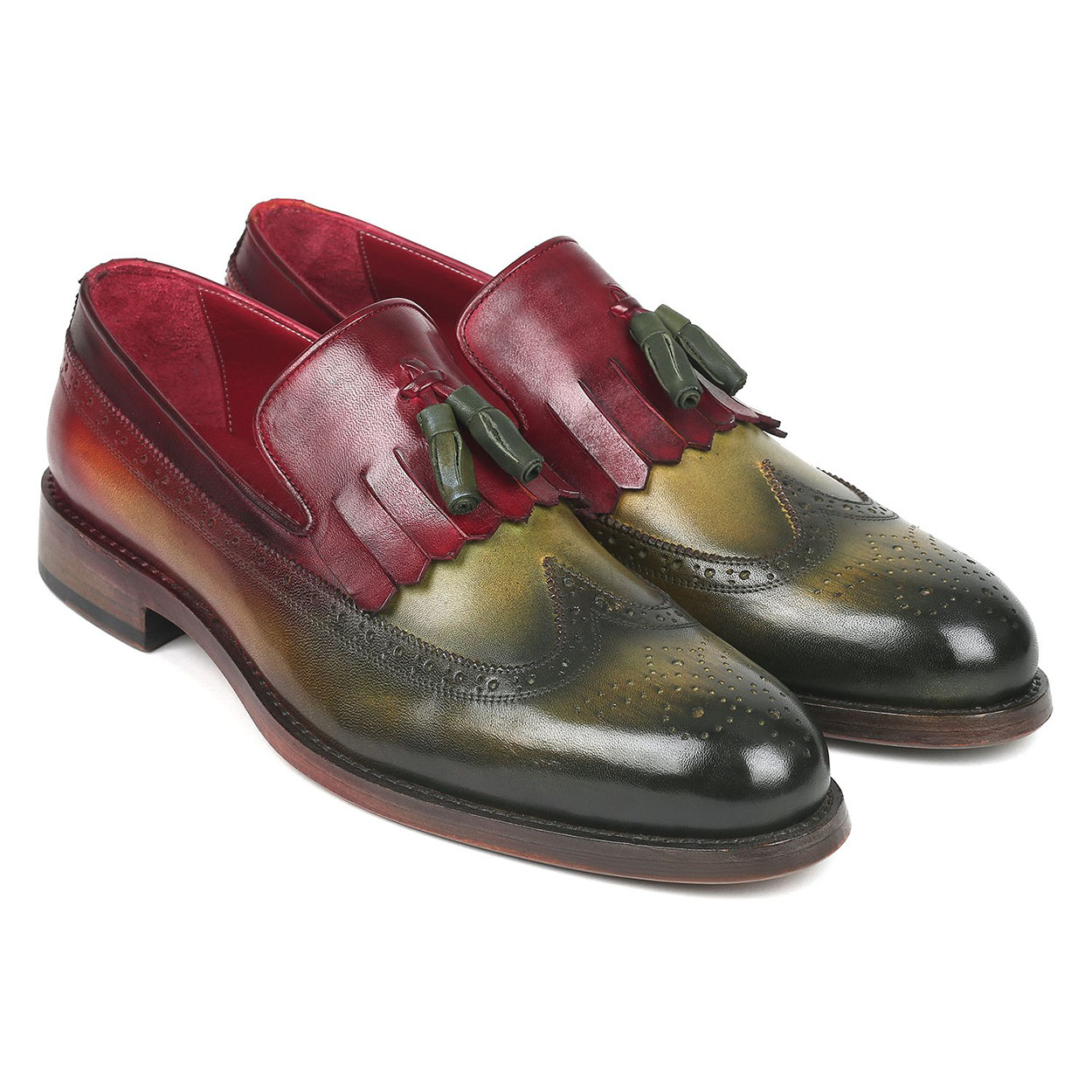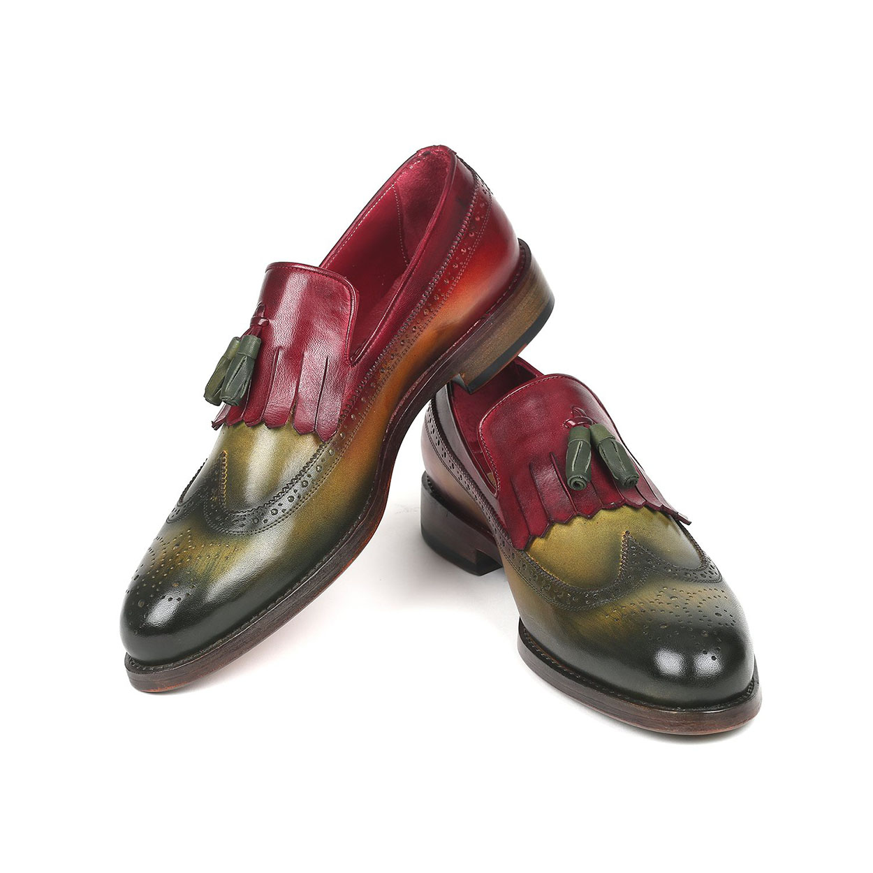 Green Maroon Contrast Fringed Loafer Slip On Tassel Wing Tip Brogue Toe Genuine Leather Shoes