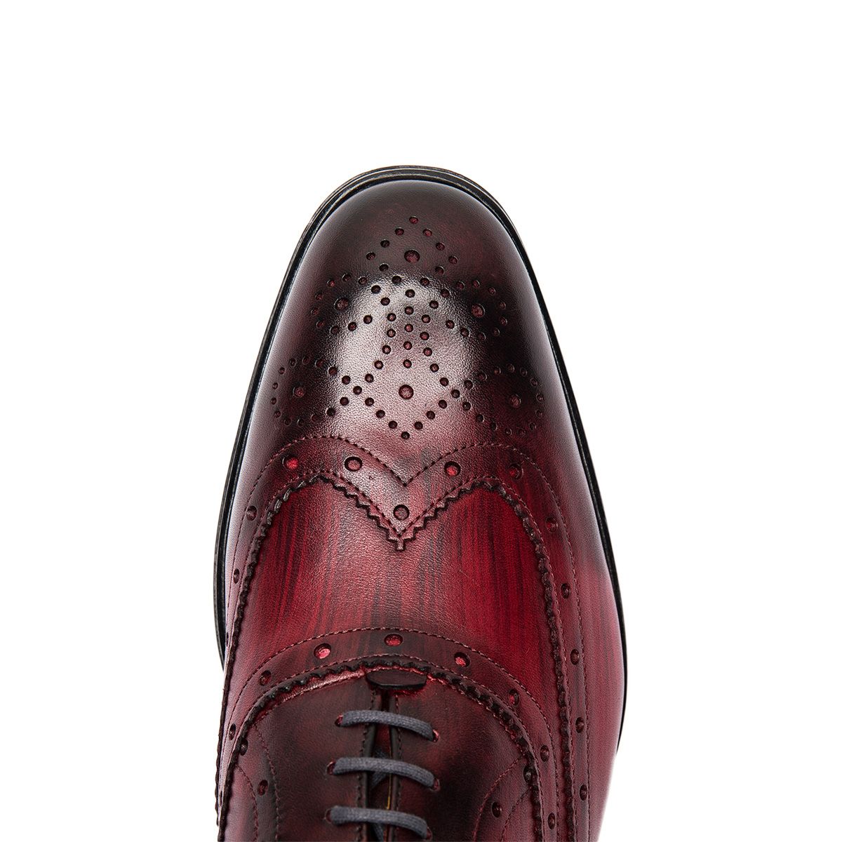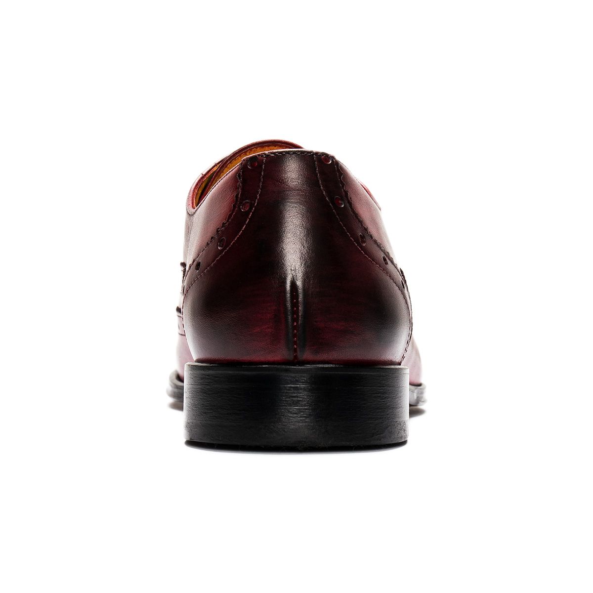 Maroon Oxford Burnished Brogue Toe Wing Tip Formal Leather Handmade Black Sole Shoes