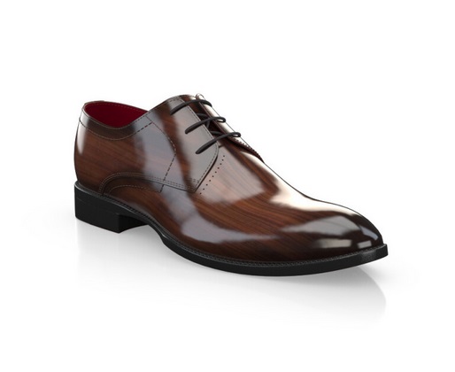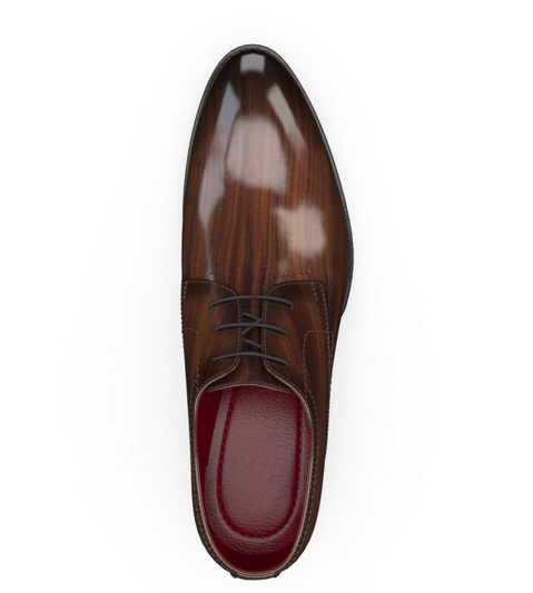 Men's Shiny Brown Oxford Patent Genuine Leather Burnished Derby Handmade Business Shoes