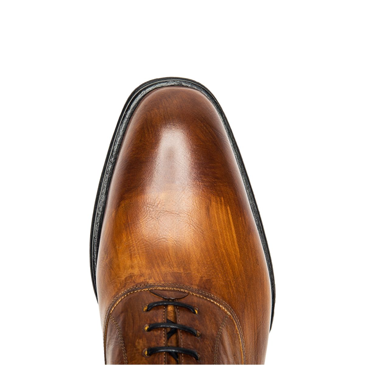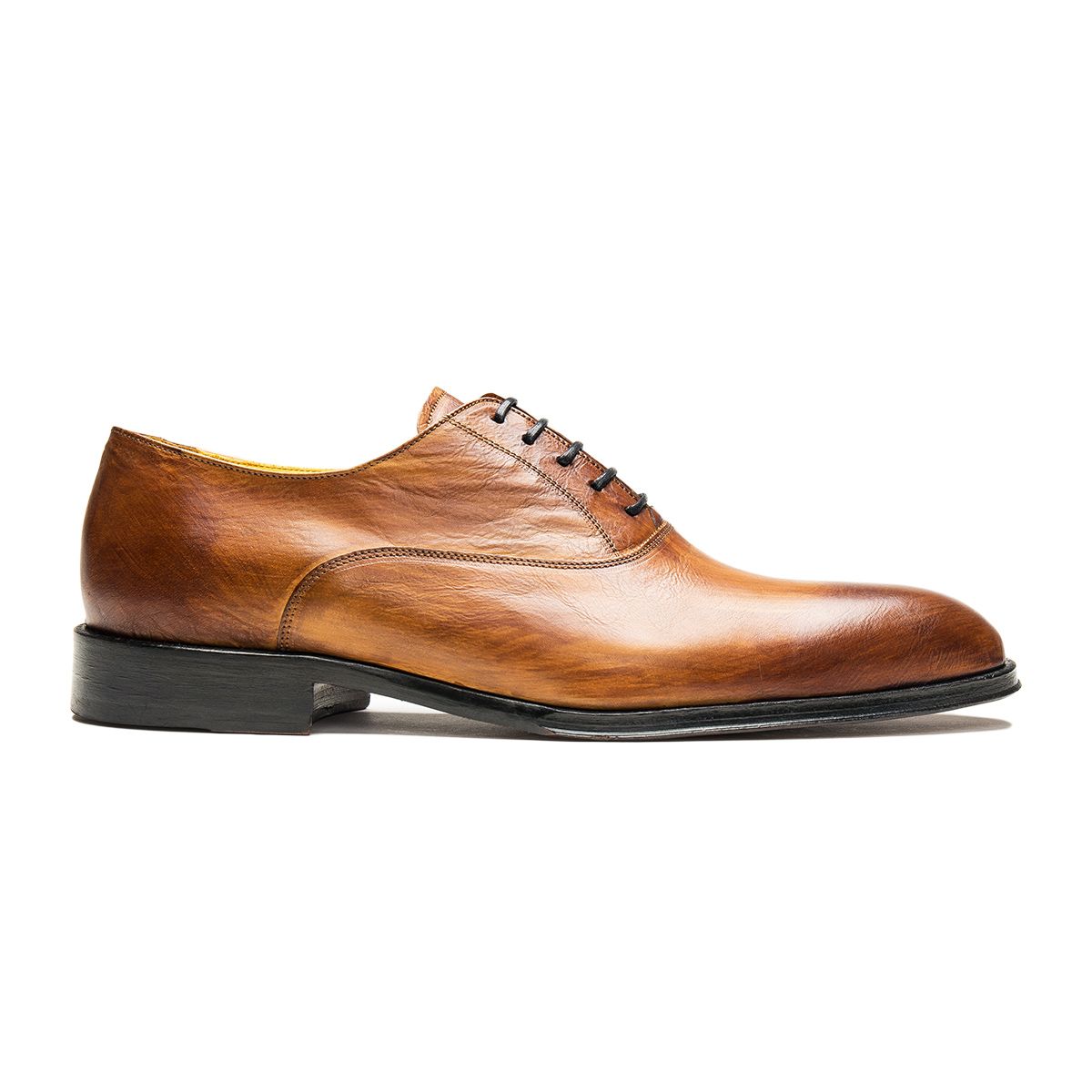 Oxford Tan Brown Genuine Cowhide Leather Patina Hand painted Derby Toe Lace Up Shoes