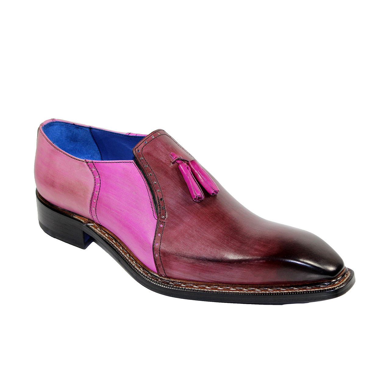 Patina hand Painted Tassel Loafer Slip On Multi Color Real Leather Burnished Derby Toe Handmade Shoes