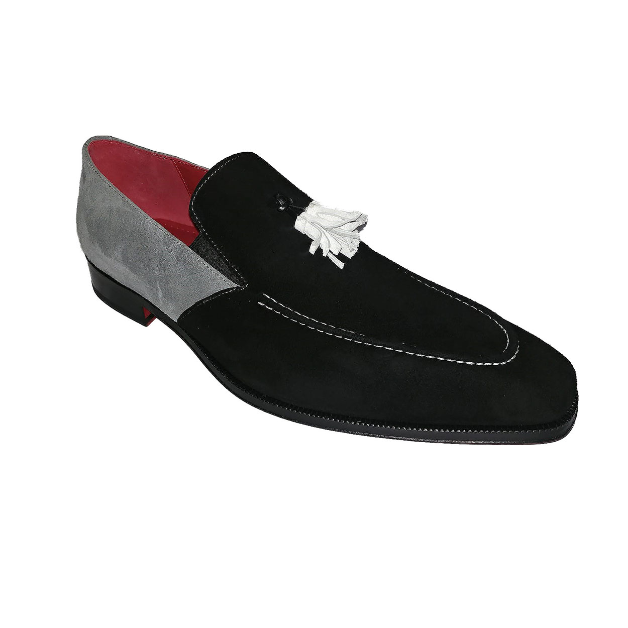 Gray Black Loafer Slip On Suede Leather White Tassel Handmade Rounded Derby Toe Shoes