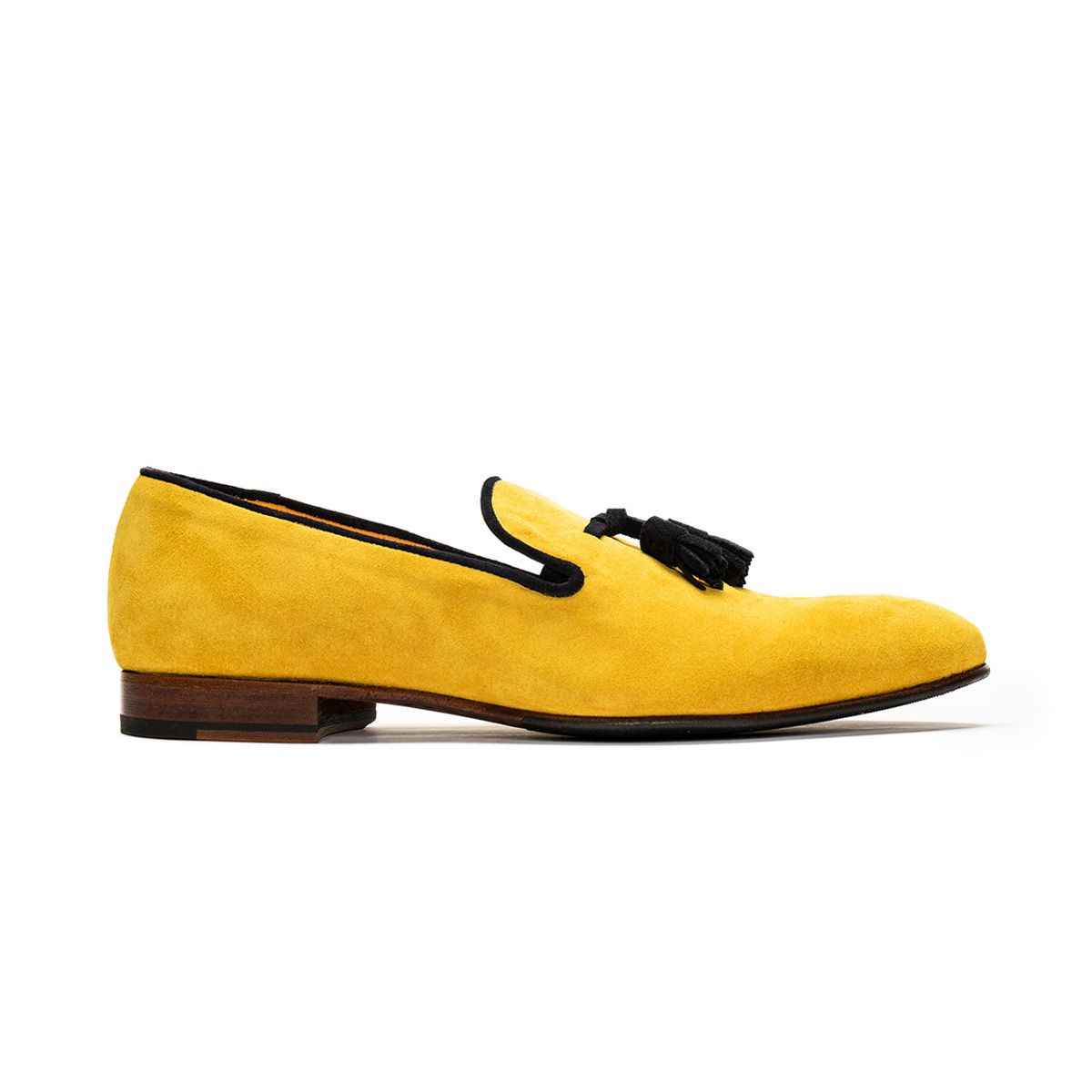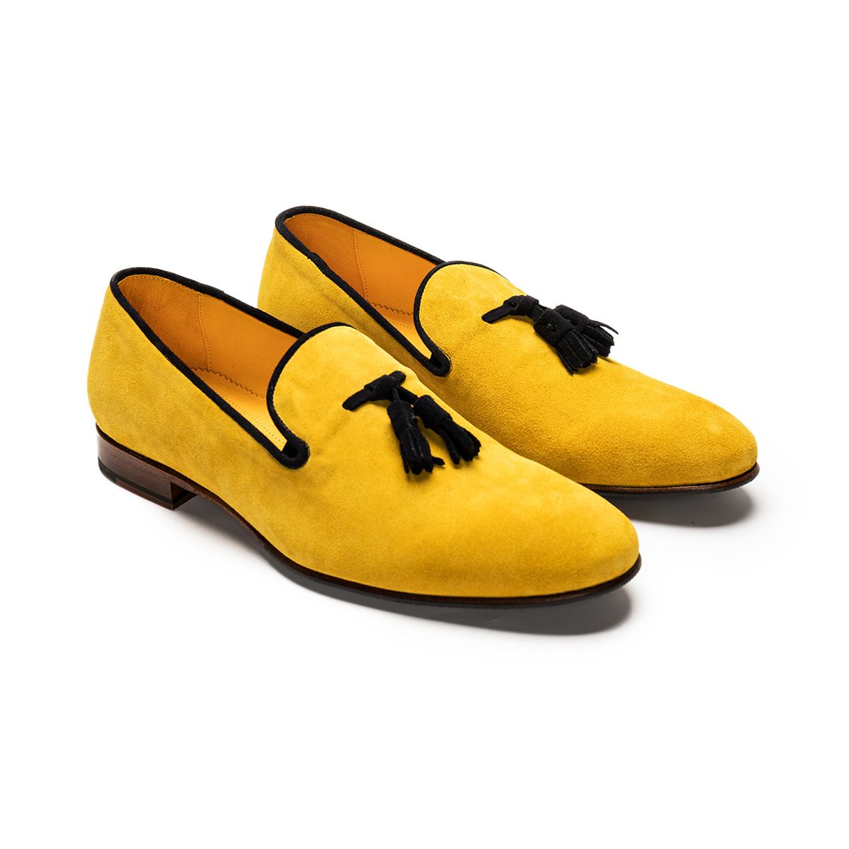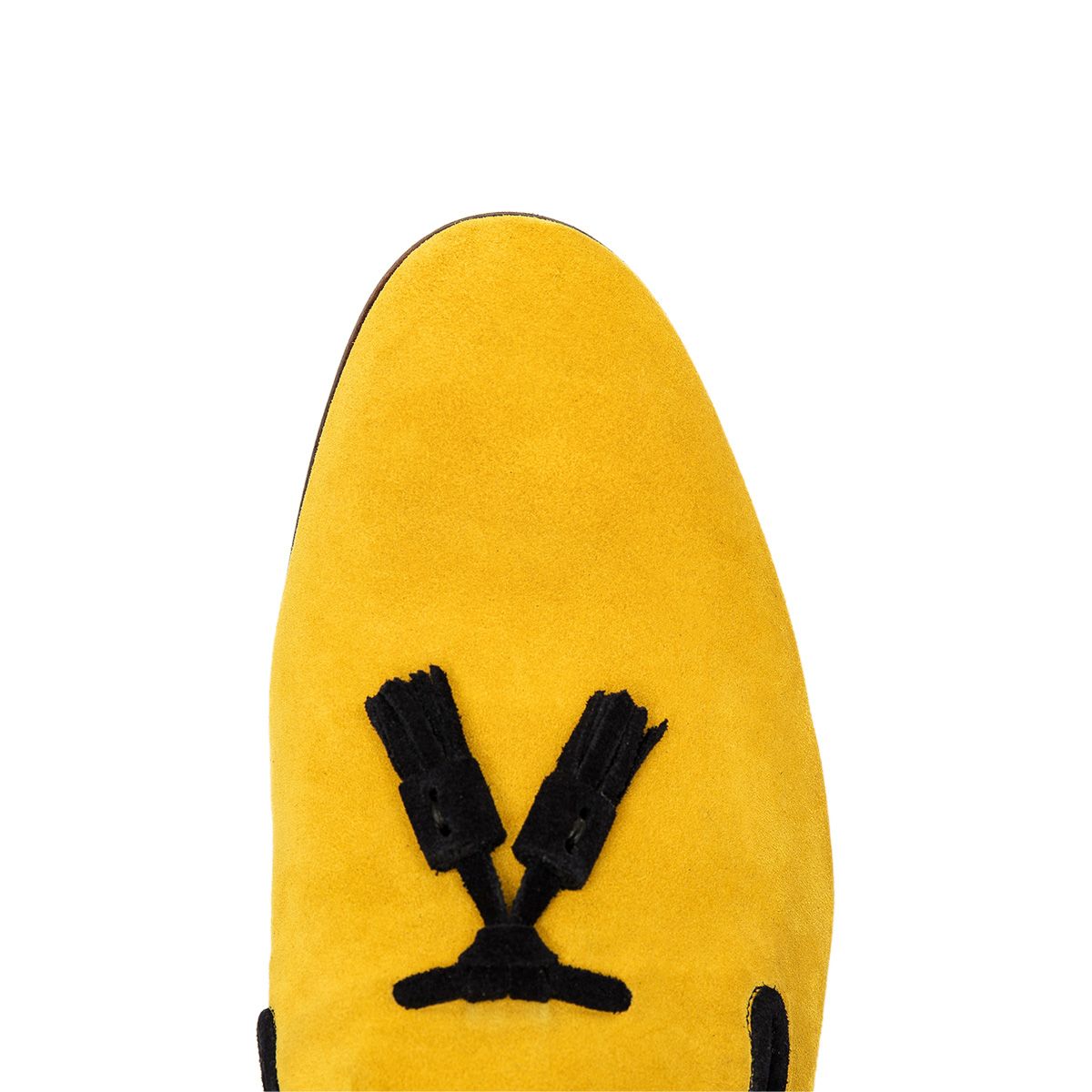 Suede Yellow Loafer Slip On Black Tassel Genuine Leather Handmade Derby Toe Men Shoes