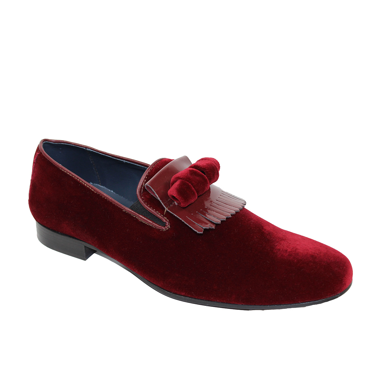 Maroon Red Velvet Fringed Tassel Loafer Slip On Genuine Handmade Men Party Shoes