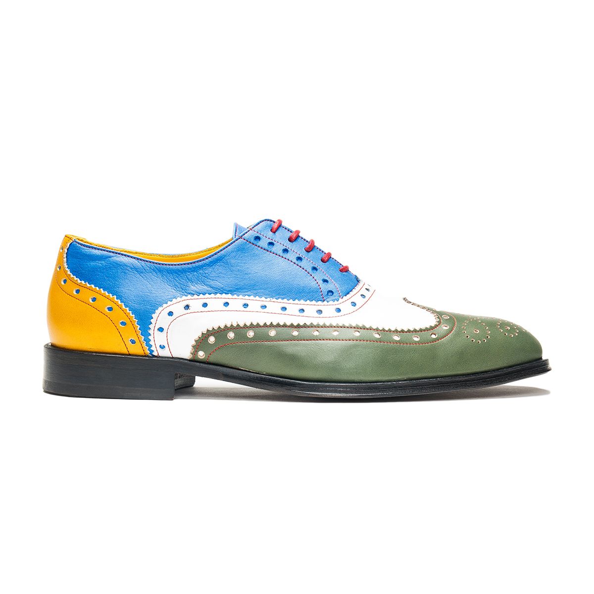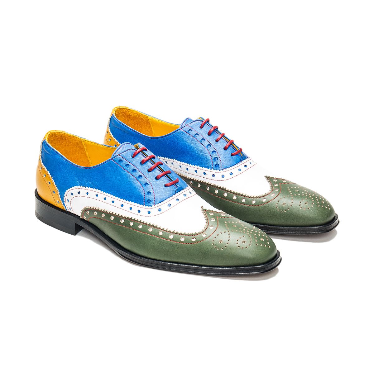 Oxford Multi Color Full Brogue Toe Wing Tip Genuine Leather Handmade Black Sole Lace Up Shoes