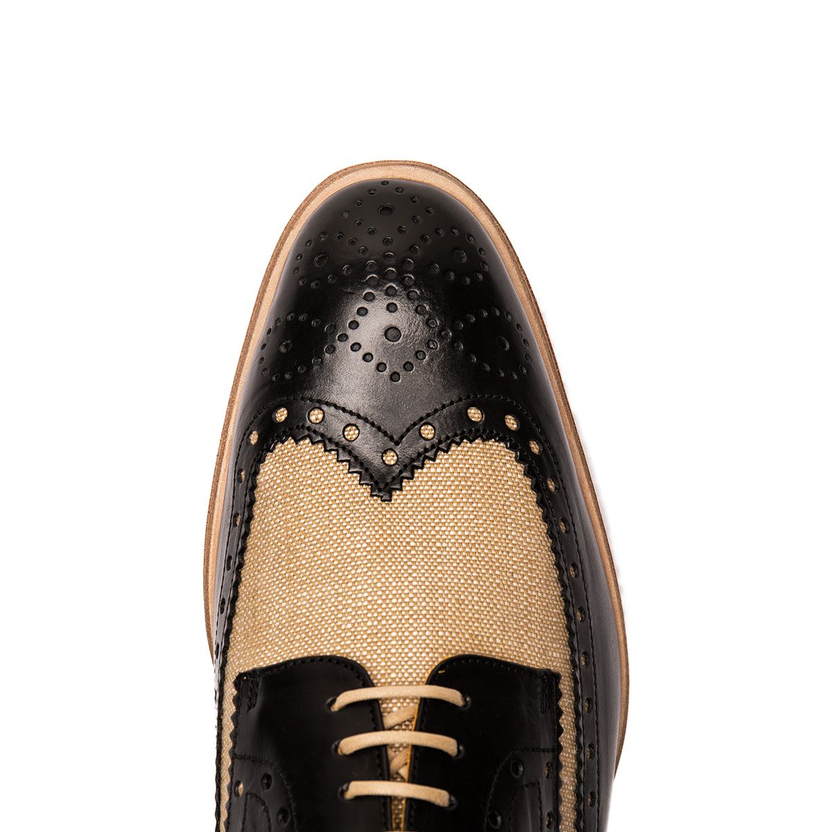 Wing Tip Two Tone Black Tweed Genuine Leather Brogue Toe Oxford Natural Color Sole Shoes