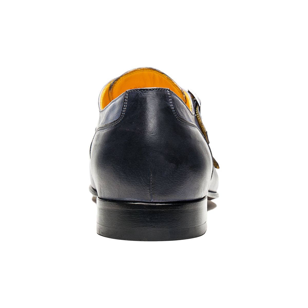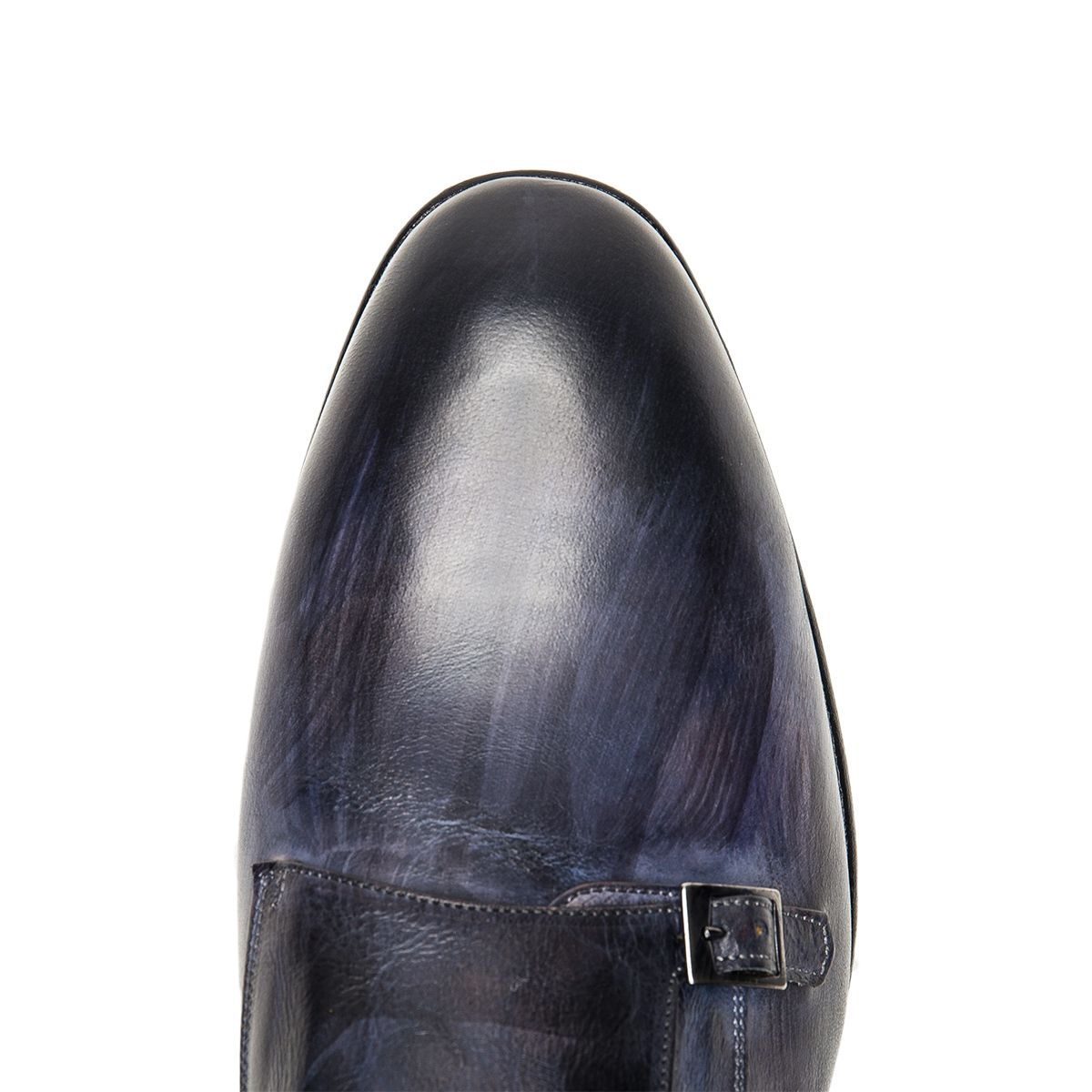Shiny Blue Monks Double Buckle Strap Burnished Derby Toe Handmade Genuine Leather Shoes