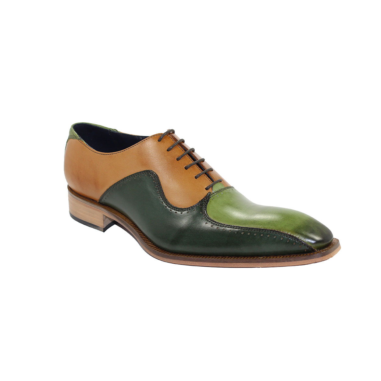 Three Tone Genuine Leather Derby Toe Handmade Lace Up Burnished Spectators Shoes