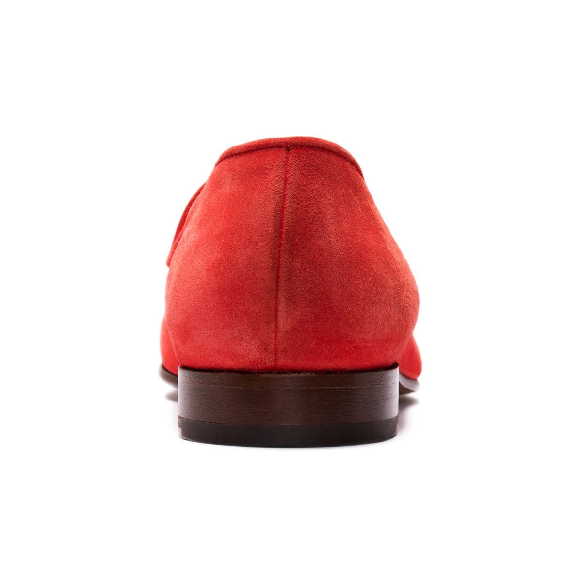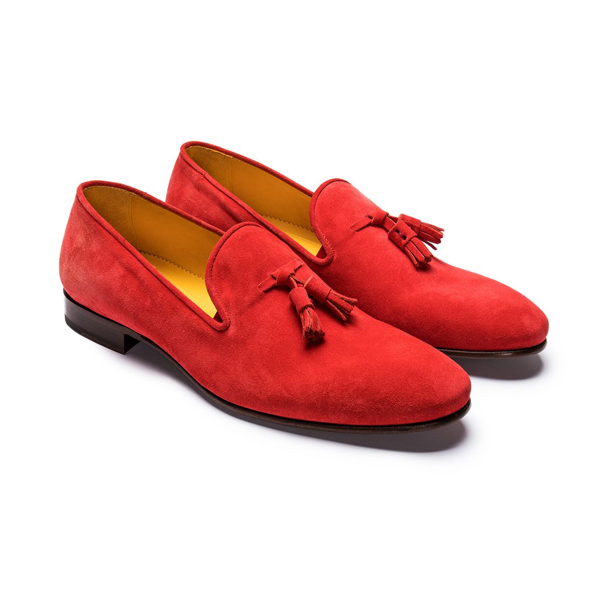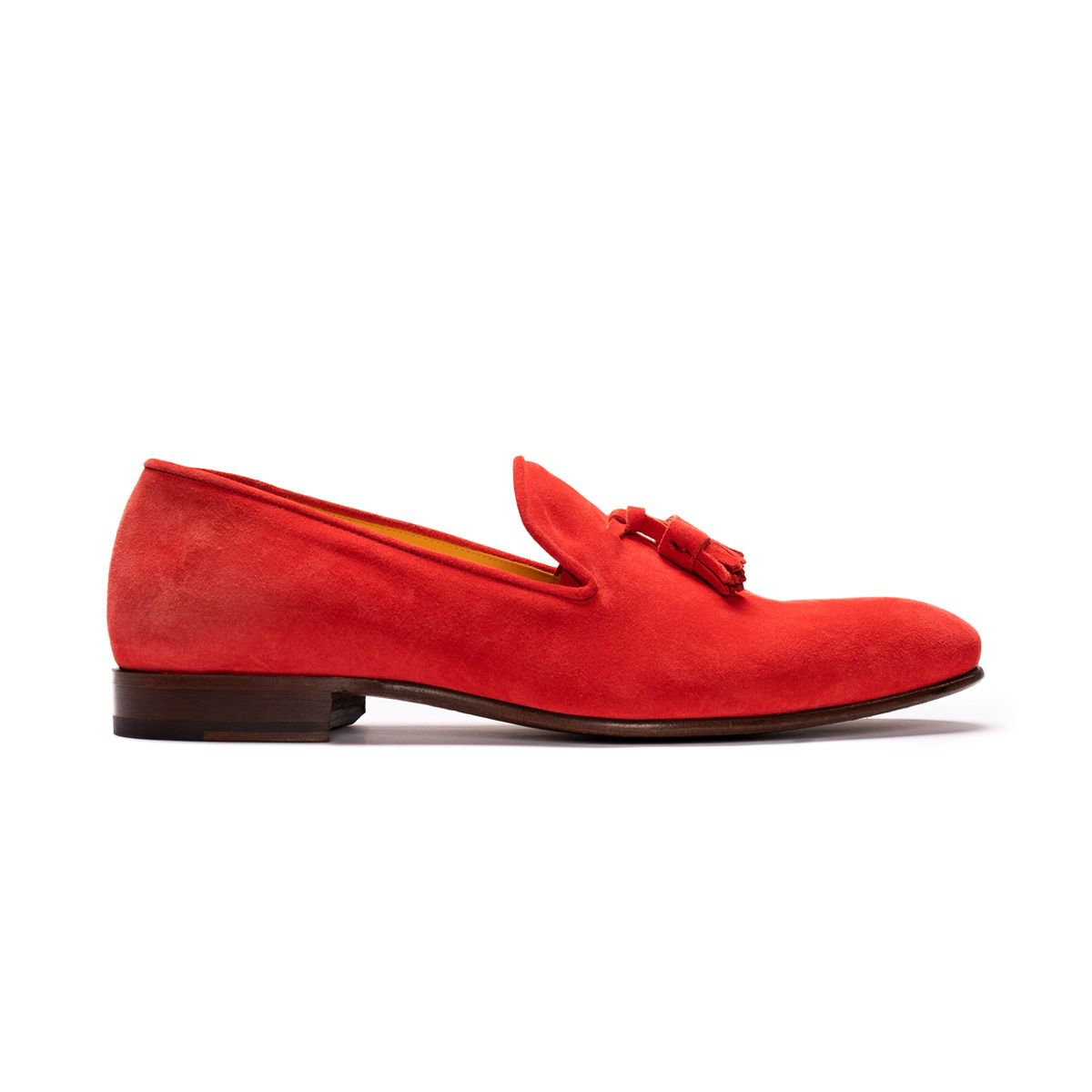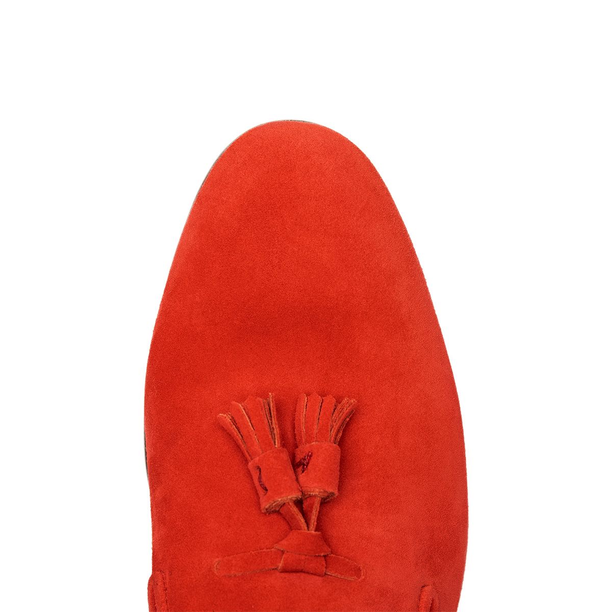 Hot Red Suede Tassels Loafer Slip On Genuine Leather Handmade Casual Wear Shoes