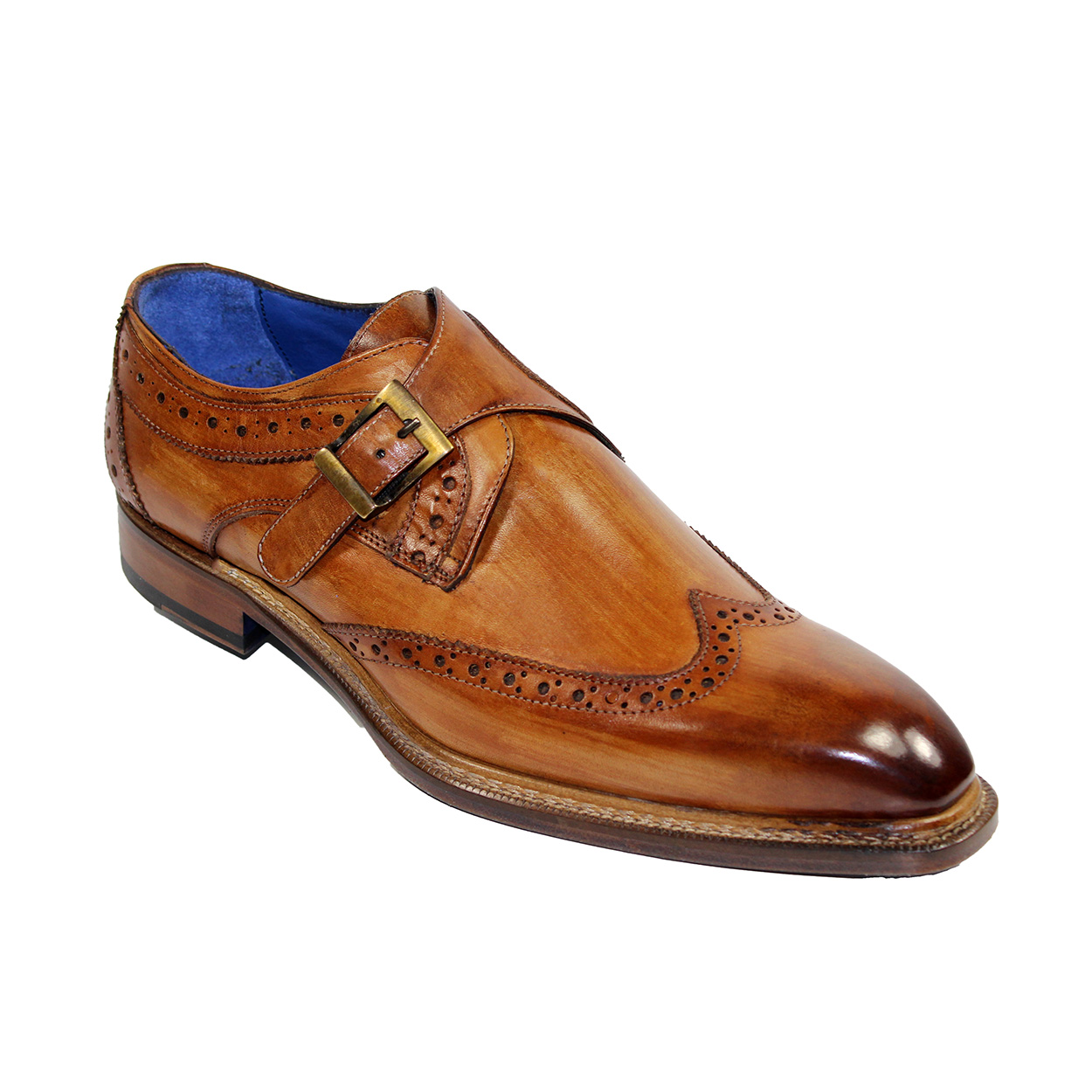 Single Buckle Monk Strap Burnished Derby Toe Wing Tip Genuine Leather Men Handmade Shoes