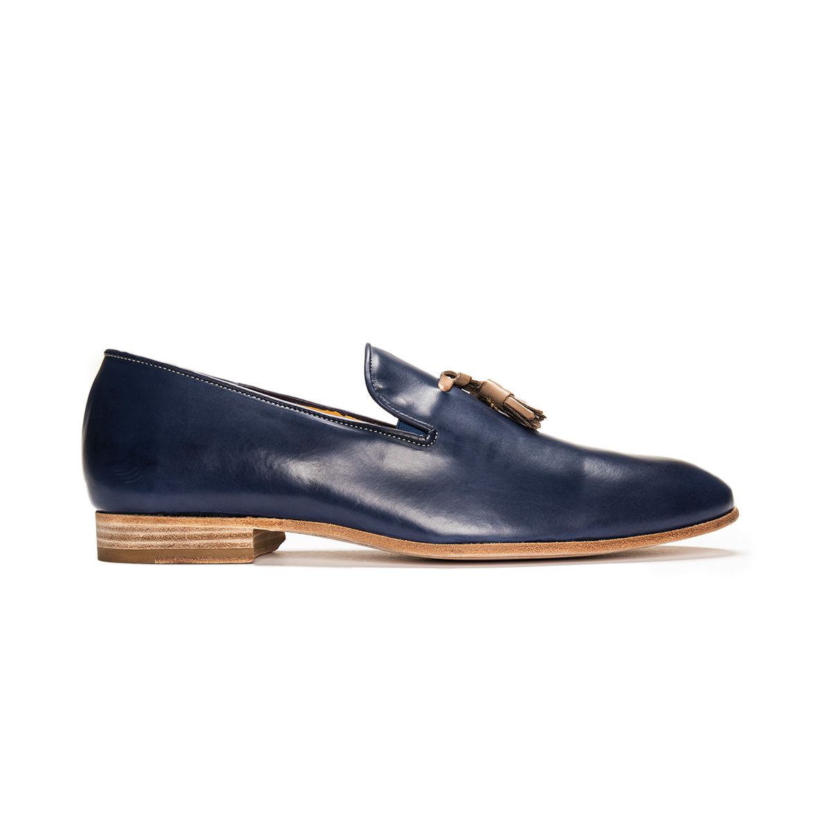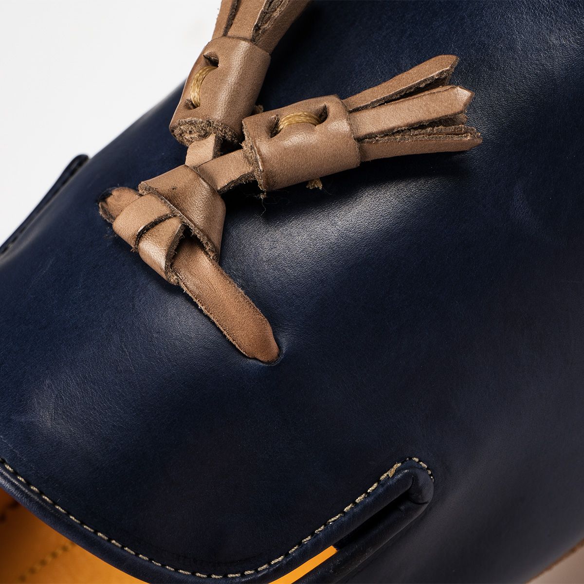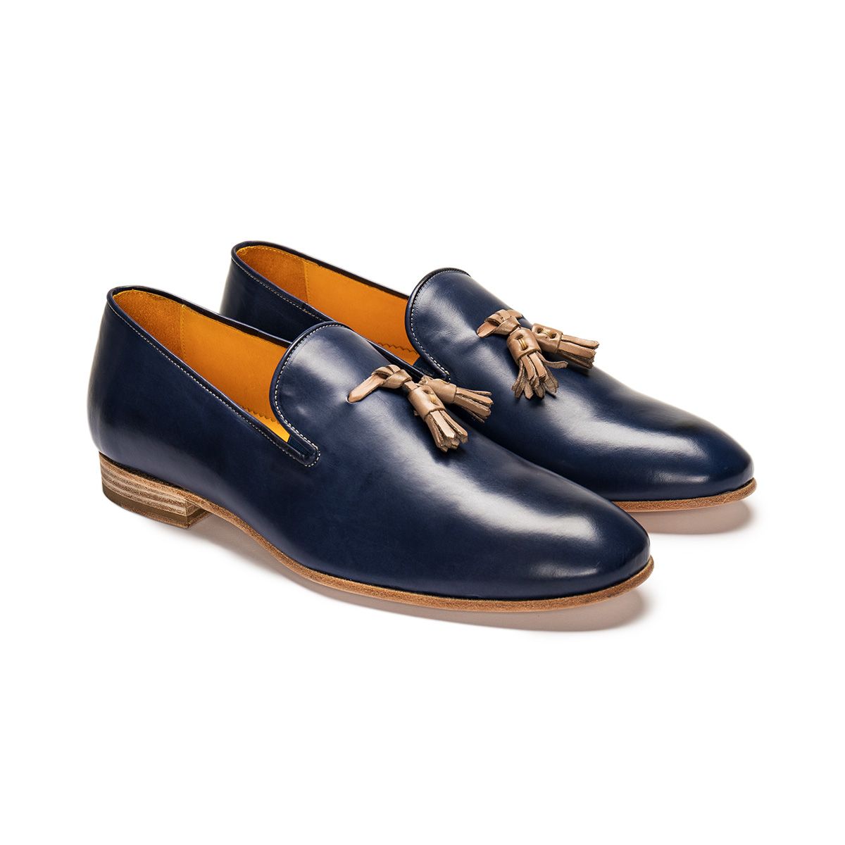 Navy Blue Loafer Slip On Tassels Derby Toe Genuine Leather Handmade Natural Color Sole Shoes