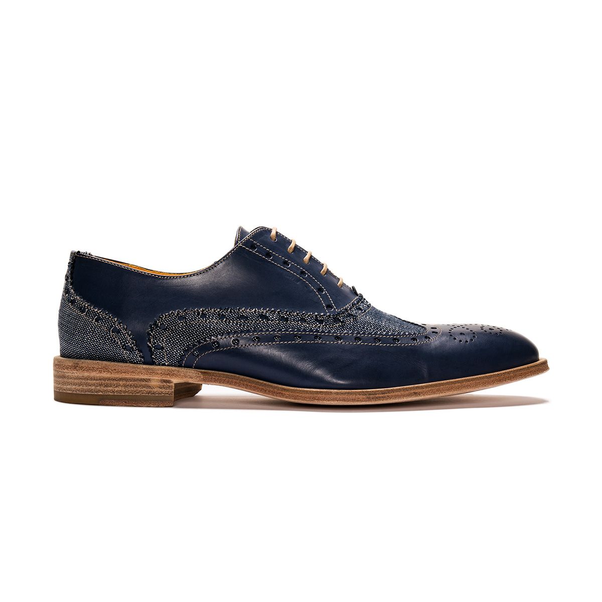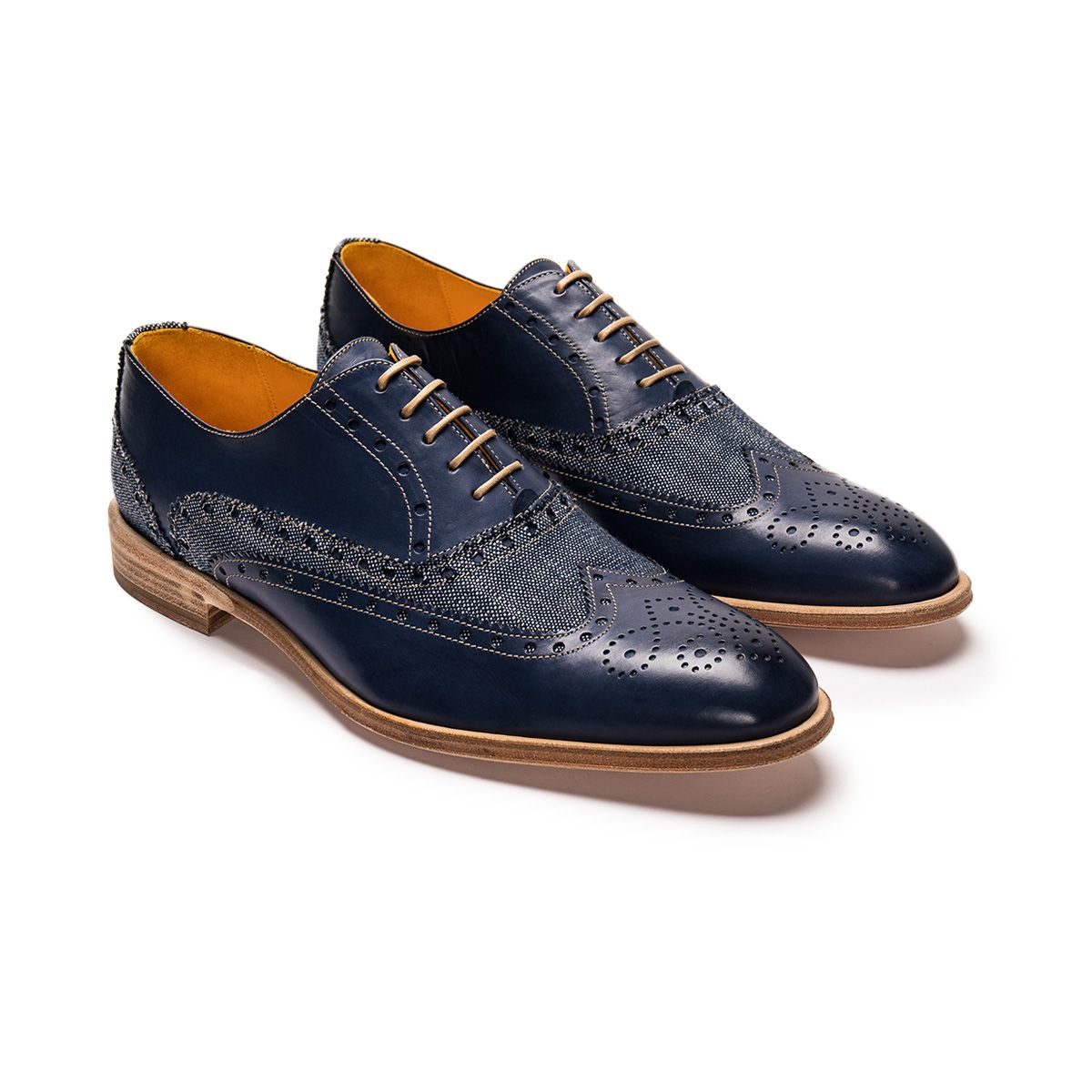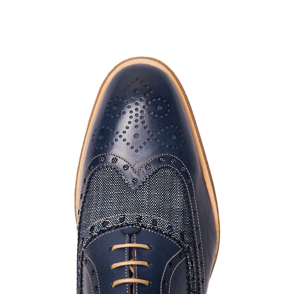 Oxford Navy Blue Wing Tip Tweed Genuine Leather Brogue Toe Matching Sole Handmade Shoes