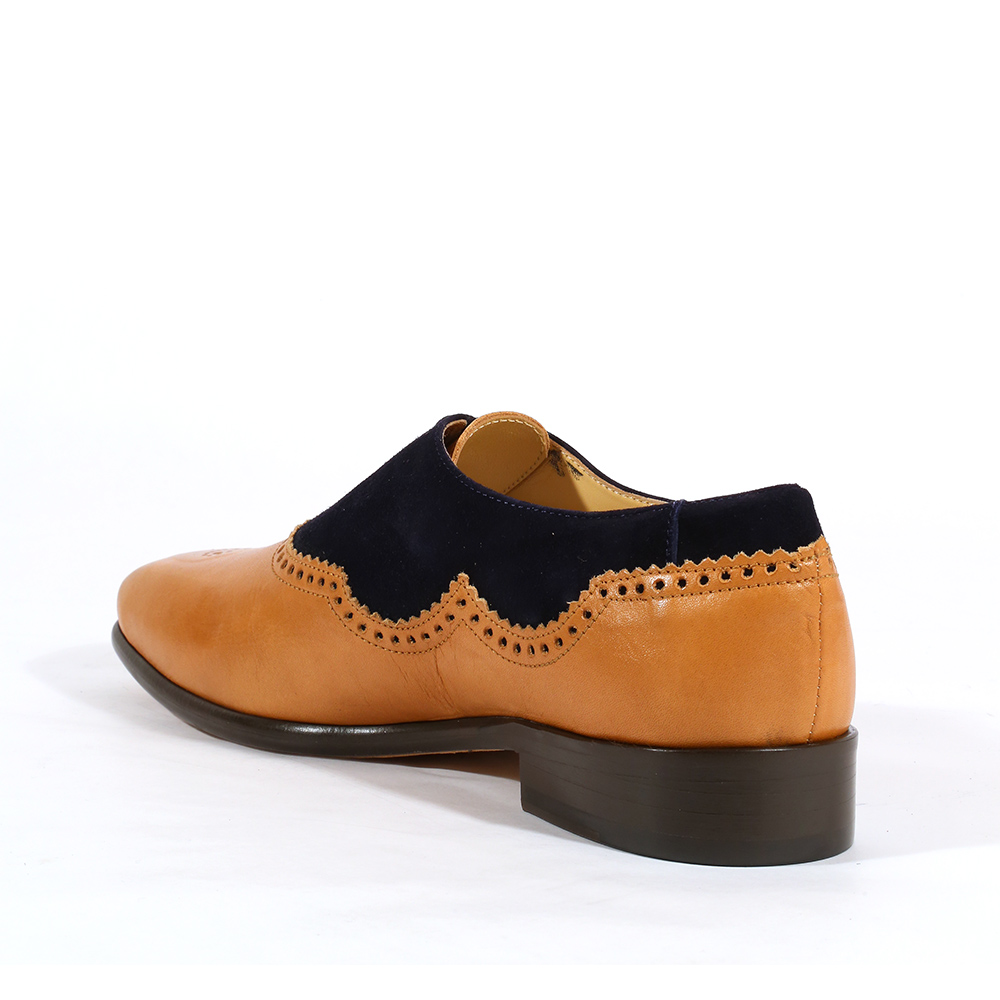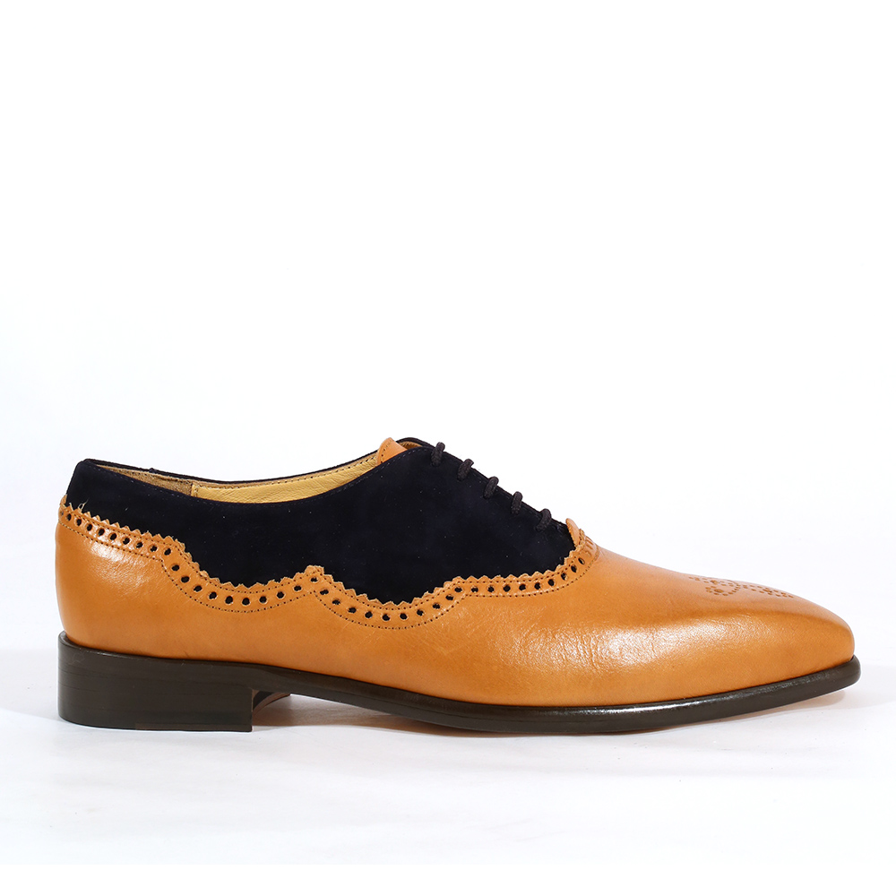 Black Suede Oxford Tan Genuine Leather Medallion Toe Handmade Lace Up Spectator Shoes