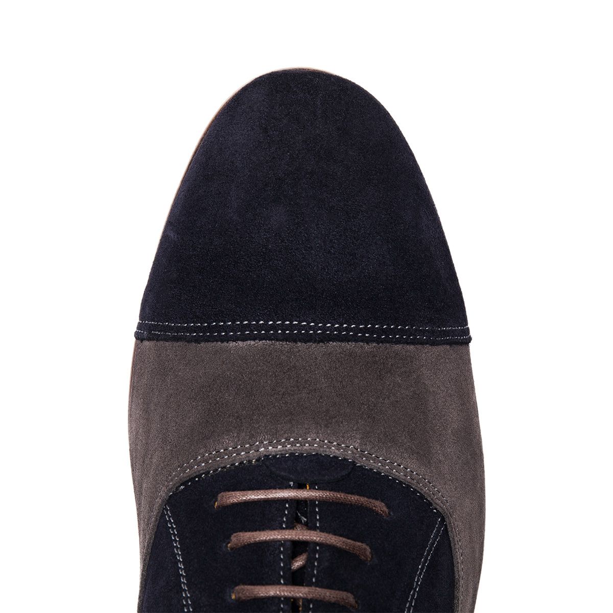 Oxford Blue Suede Gray Two Tone Derby Cap Toe Real Leather Lace Up Handmade Footwear Shoes