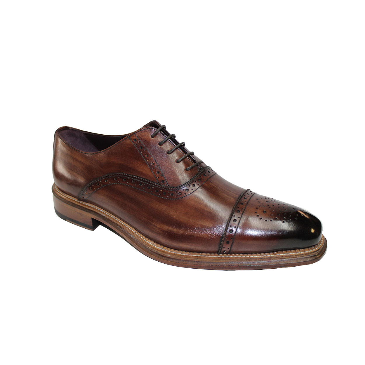 Oxford Brown Patina Hand Painted Burnished Brogue Cap Toe Genuine Leather Lace Up Men Shoes