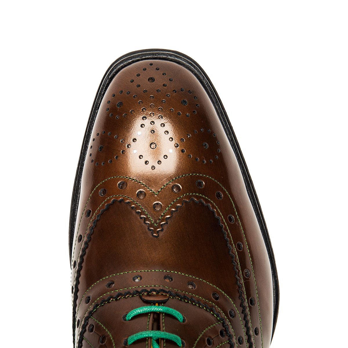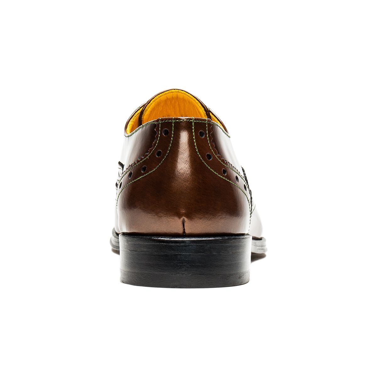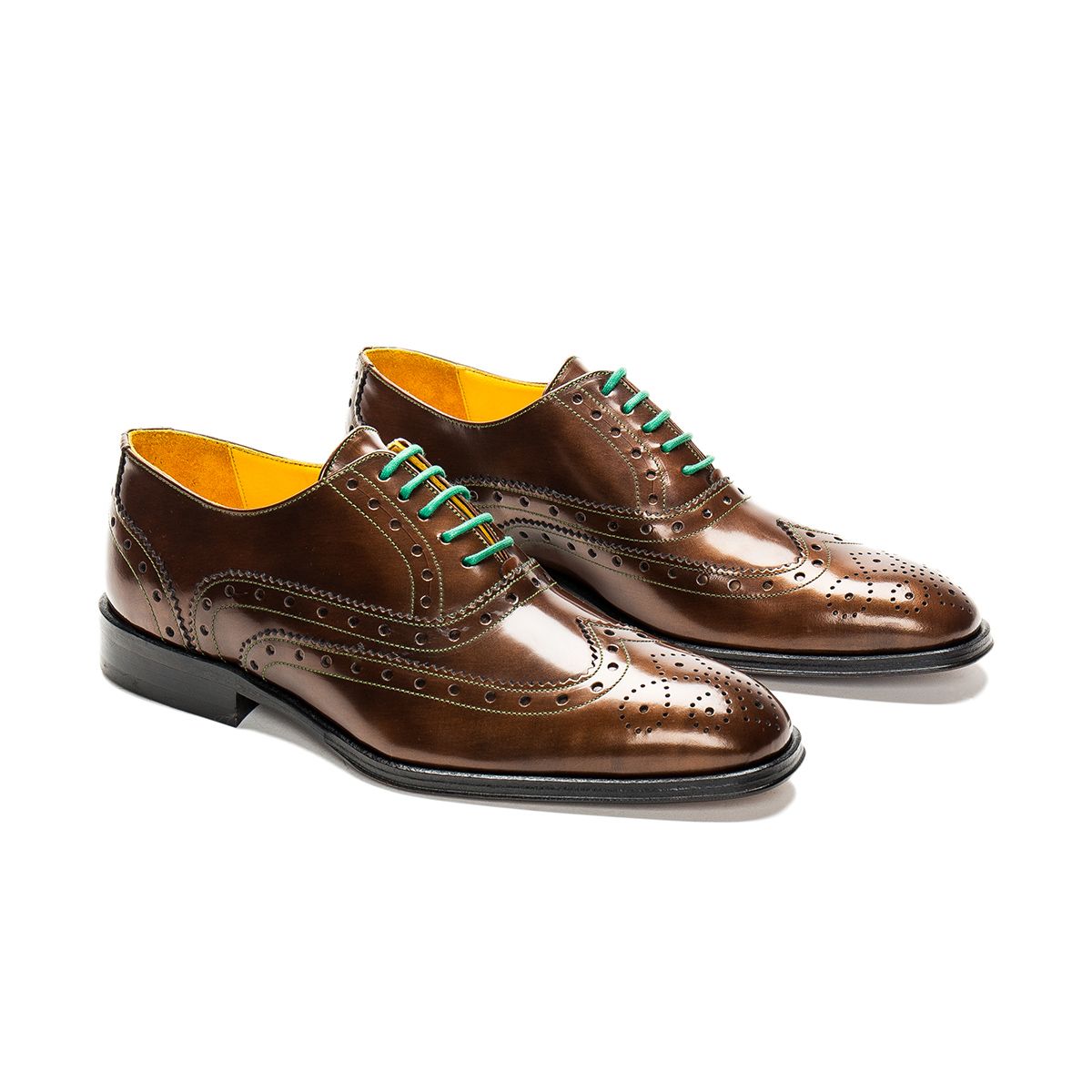 Patent Brown Wing Tip Genuine Leather Handmade Full Brogue Lace Up Black Sole Shoes