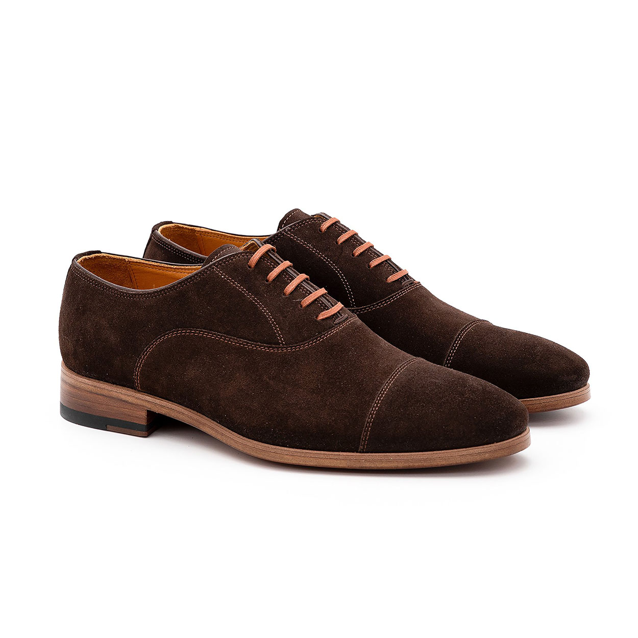 Suede Oxford Brown Genuine Leather Derby Cap Toe Lace Up Handmade Formal Dress Men Shoes