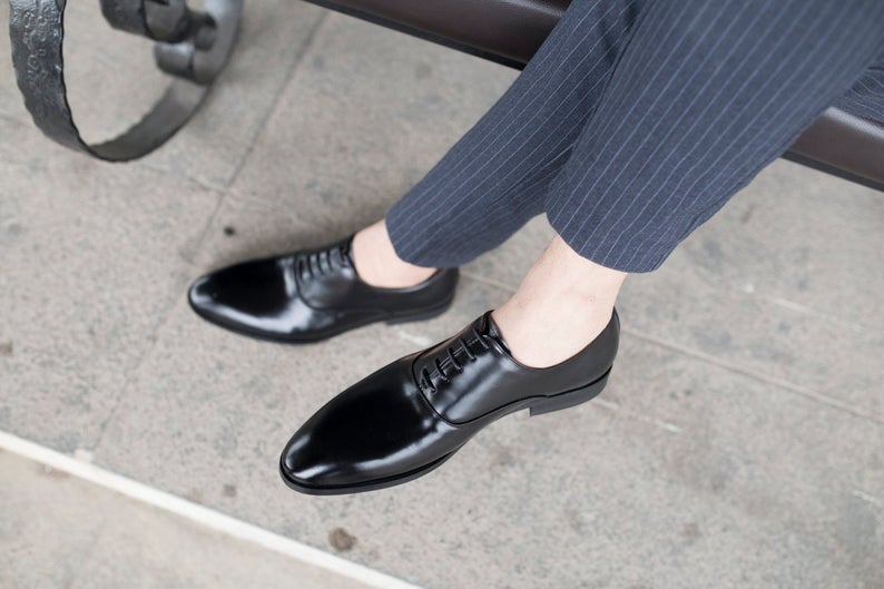 Oxford Genuine Patent Leather Black Formal Dress Lace Up Handmade Business Shoes