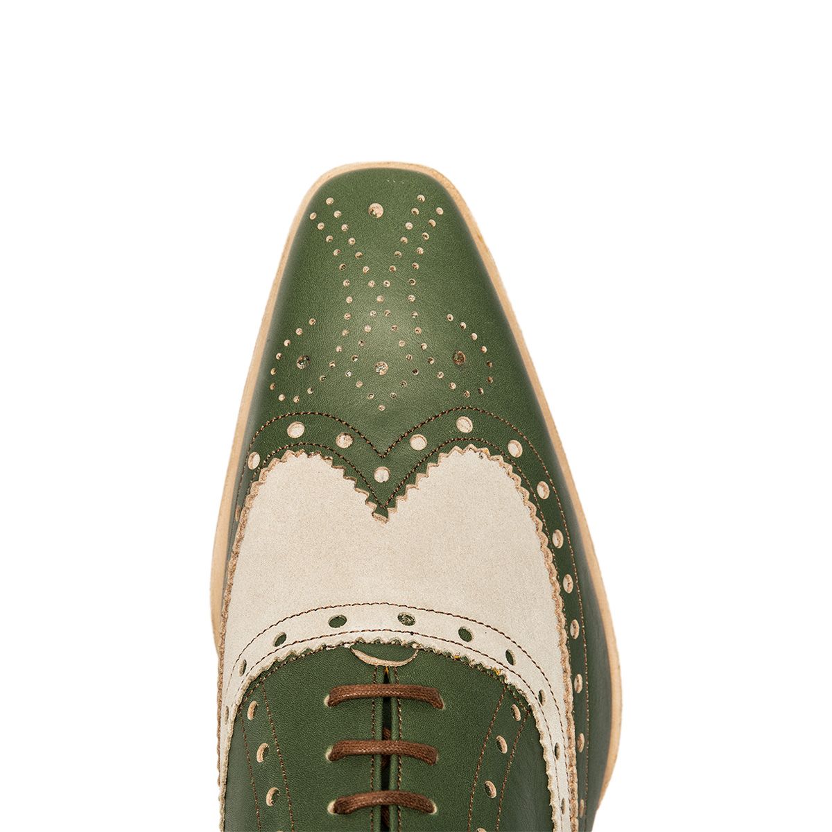 Two Tone Oxford Green Genuine Leather Beige Suede Wing Tip Full Brogue Toe Handmade Shoes