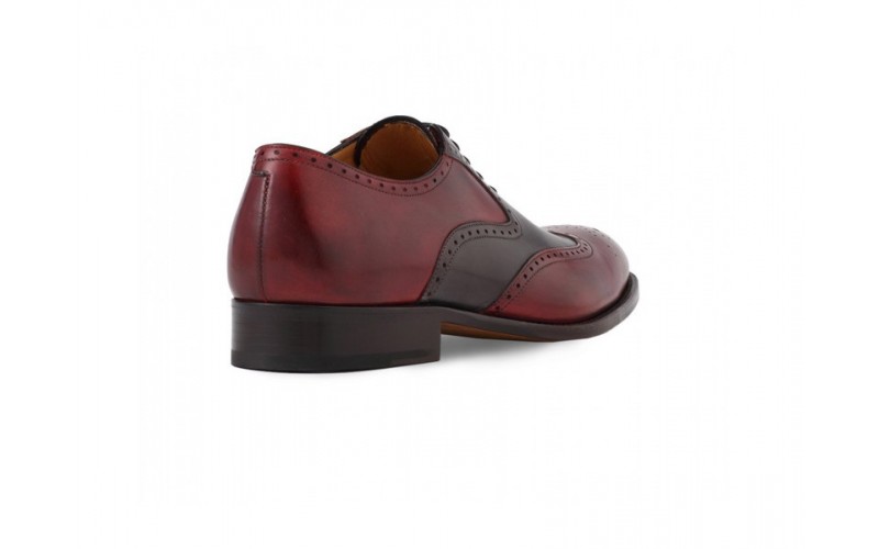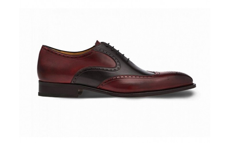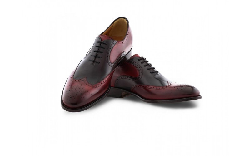 Maroon and Black Oxford Two Tone Burnished Brogue Toe Wing Tip Genuine Leather Handmade Shoes