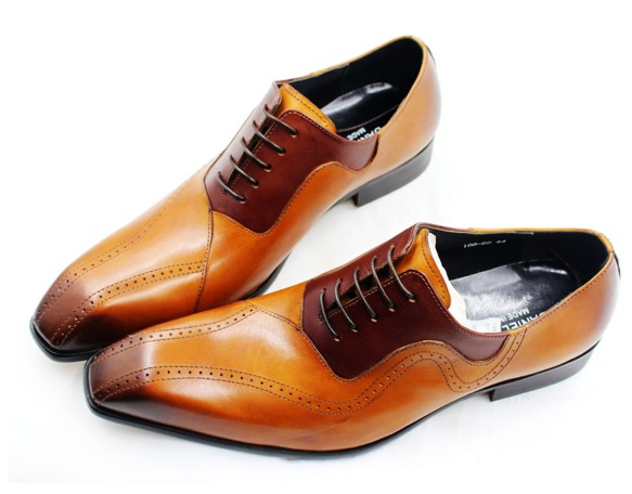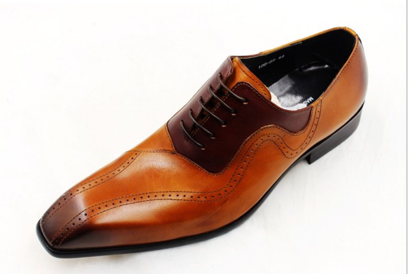 Two Tone Rounded Burnished Toe Genuine Leather Tan Brown Handmade Lace Up Shoes