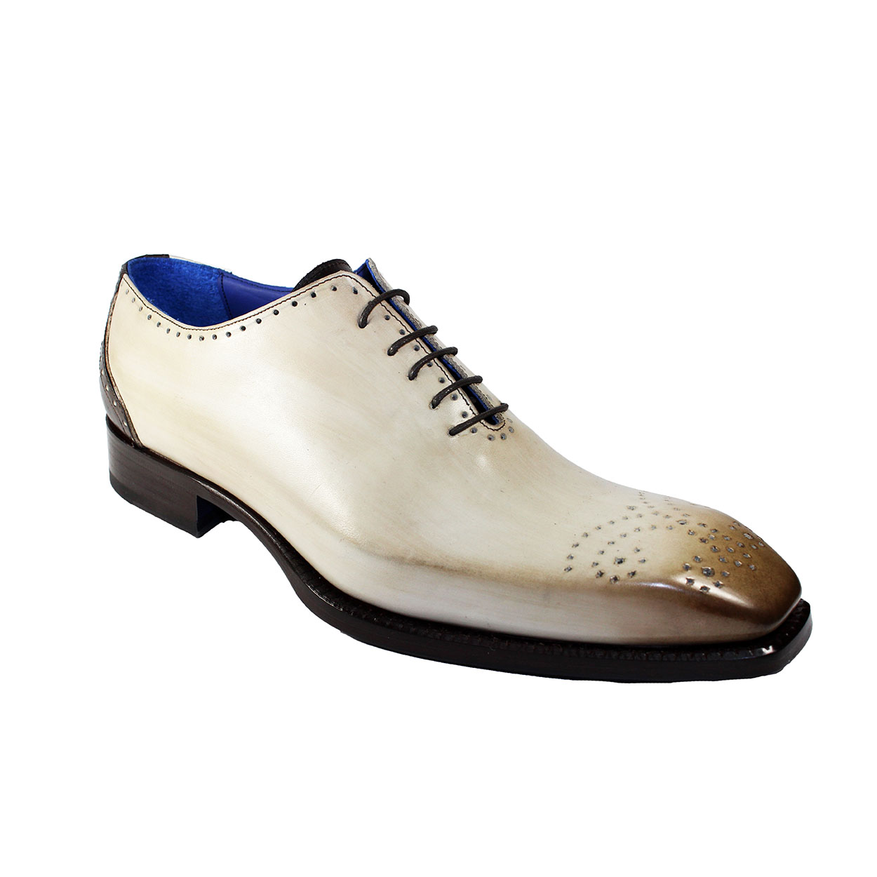 White Oxford Genuine Leather Burnished Medallion Toe Handmade Lace Up Black Sole Shoes