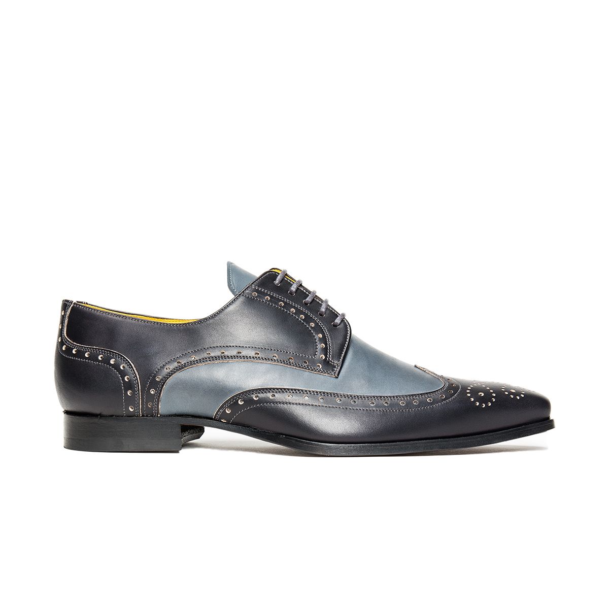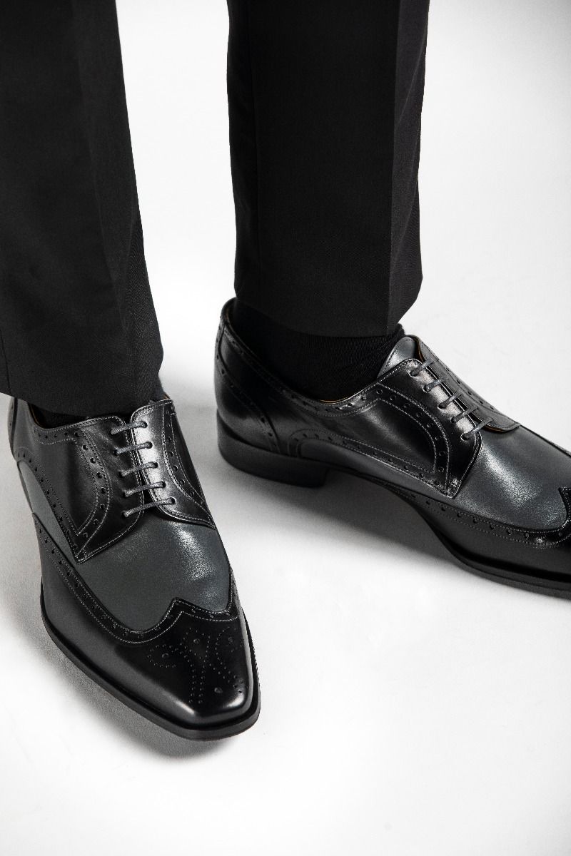 Oxford Black and Gray Full Brogue Toe Genuine Leather Wing Tip Handmade Formal Shoes