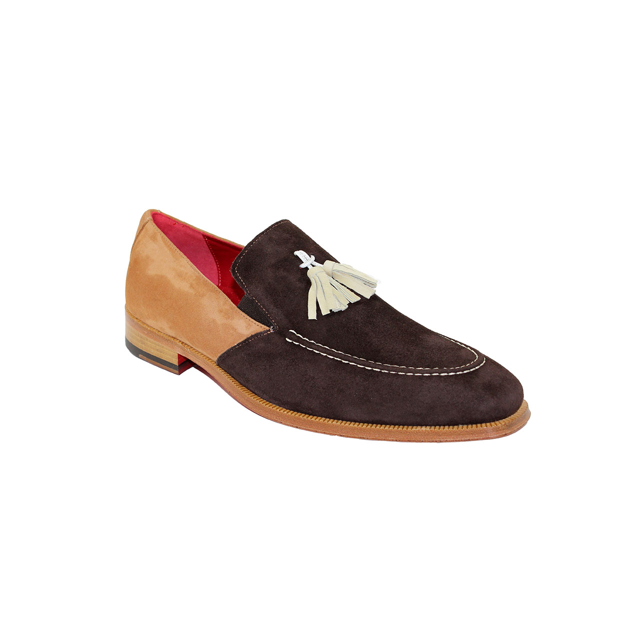 Tan Brown Loafer Slip On Two Tone White Tassel Handmade Suede Genuine Leather Shoes