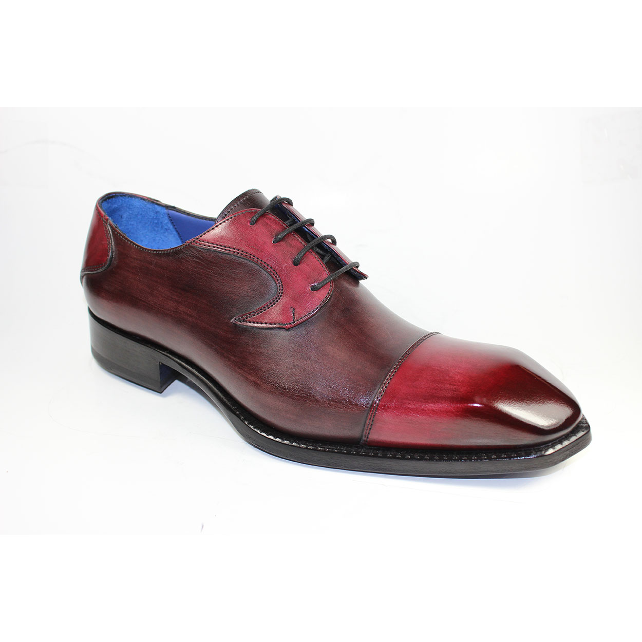 Patina Hand Painted Two Tone Burgundy Vintage Leather Burnished Derby Cap Toe Formal Dress Shoes