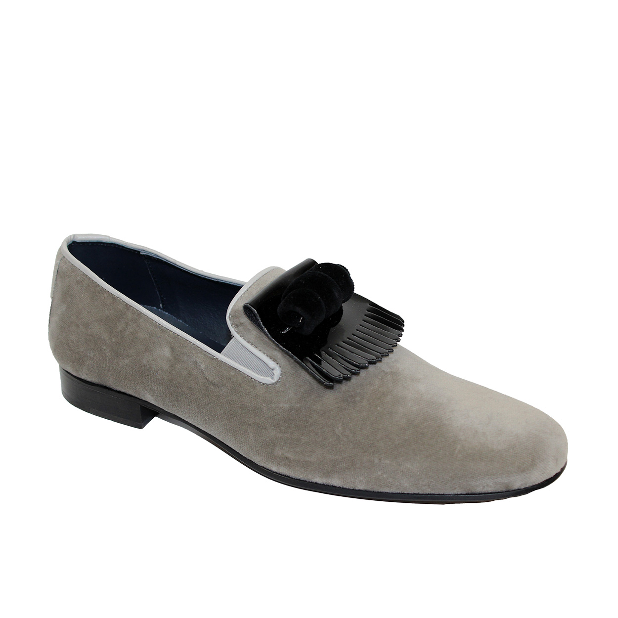 Gray Velvet Loafer Slip On Black Tassel Real Leather Fringed Handmade Matching Sole Fashion Shoes