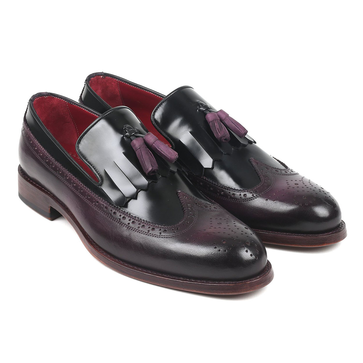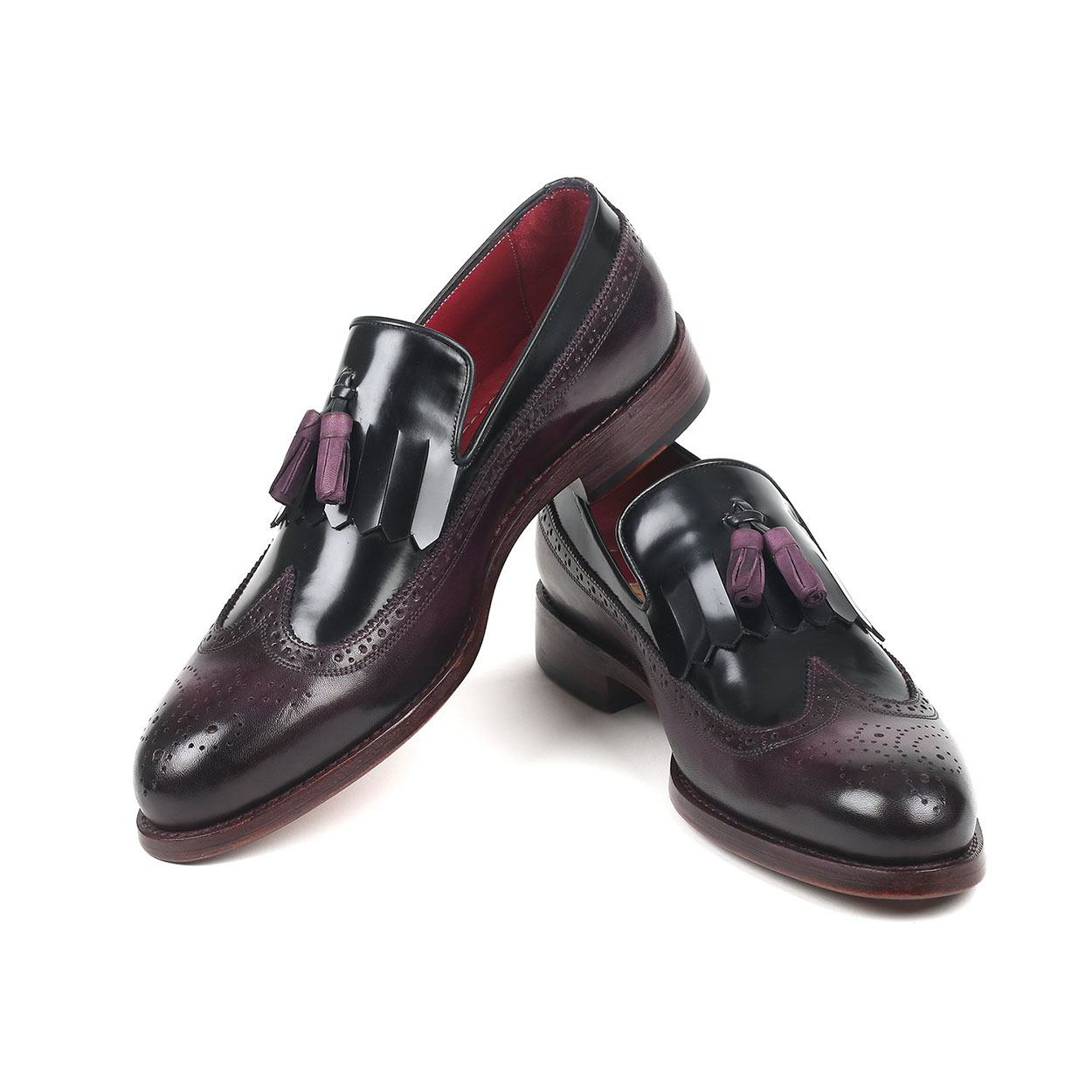 Fringed Loafer Slip On Wing Tip Real Leather Purple Tassel Burnished Brogue Toe Handmade Shoes