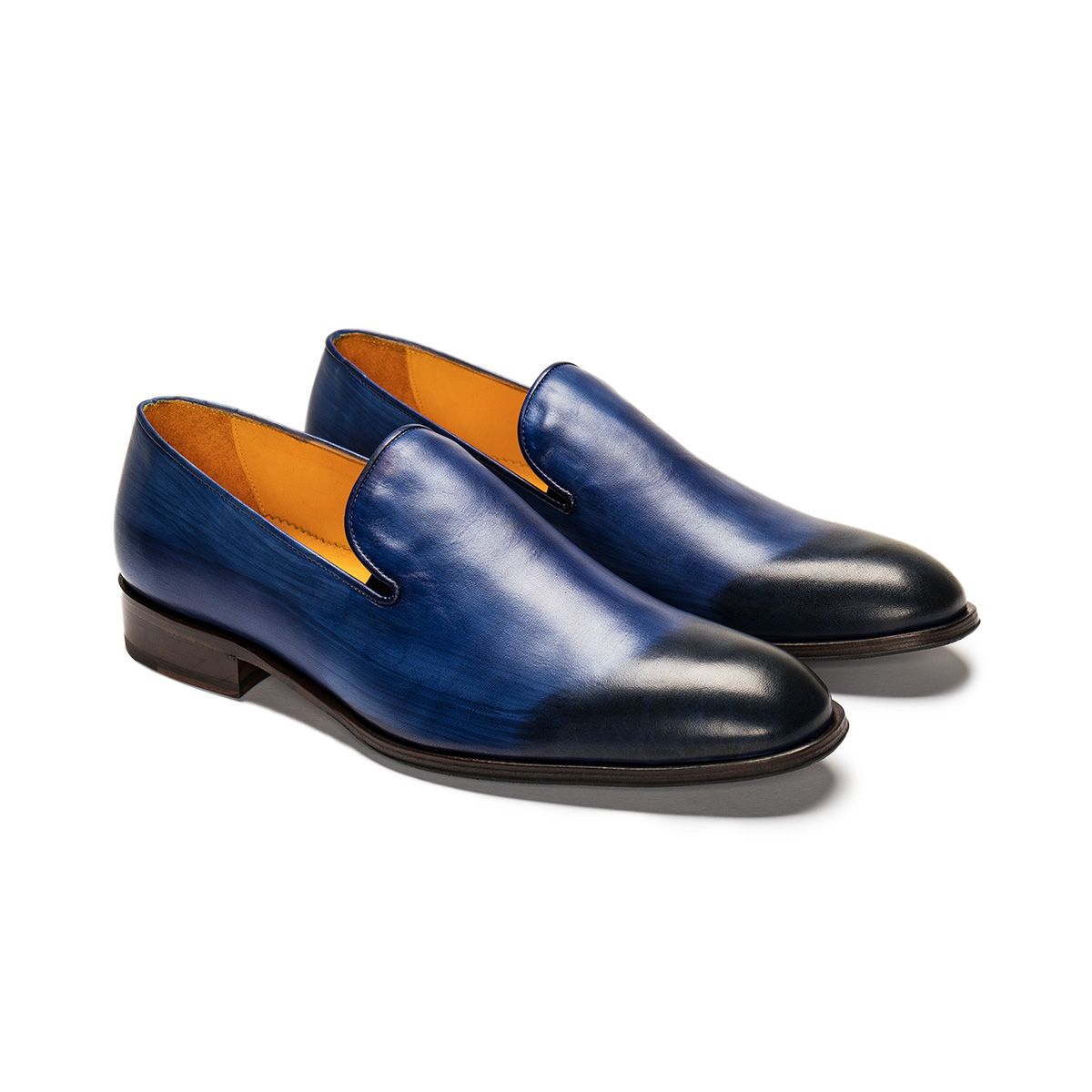 Two Tone Loafer Slip On Blue Black Derby Burnished Toe Genuine Leather Casual Handmade Shoes